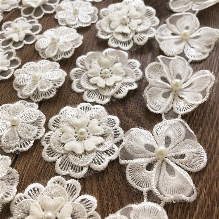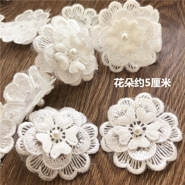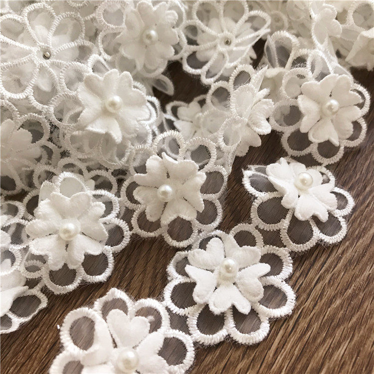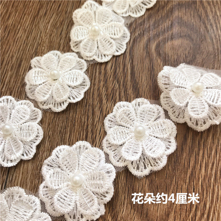 Бесплатная доставка, белые кружевные ногти из органзы, жемчужные трехмерные кружевные цветы, свадебное платье, сделай сам, декоративные аксессуары ручной работы
