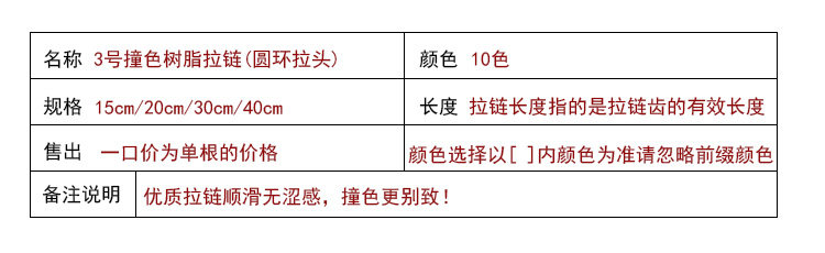 [Аксессуары от Coco Home] Гладкая молния из смолы контрастного цвета/15/20/30/40 см съемник колец ярких цветов