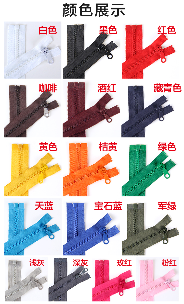 О молнии: модель 5 смолы открытая хвоста, длина: 40 см.— 80 см.Среди них 16 цветов 70 см, а другие спецификации - только три цвета белого черного и красного.Если вам нужна двойная молния или более длинная молния, свяжитесь с обслуживанием клиентов.
