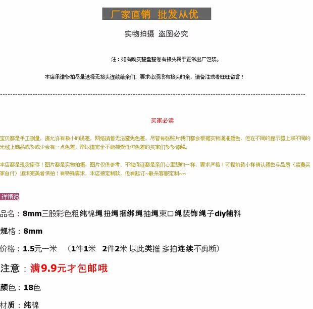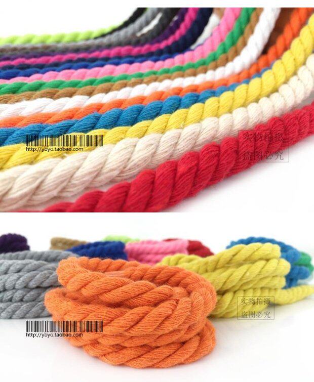 В 11 -летнем магазине, 20 цветов 8 мм три -стрранди, красочные грубые чистые хлопковые веревки, веревки с завязанными веревками, рисование веревки