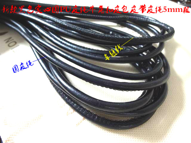 Черная кожаная веревка PU, круглая кожаная веревка сплошной круглой кожаной веревки  толщина 5 мм