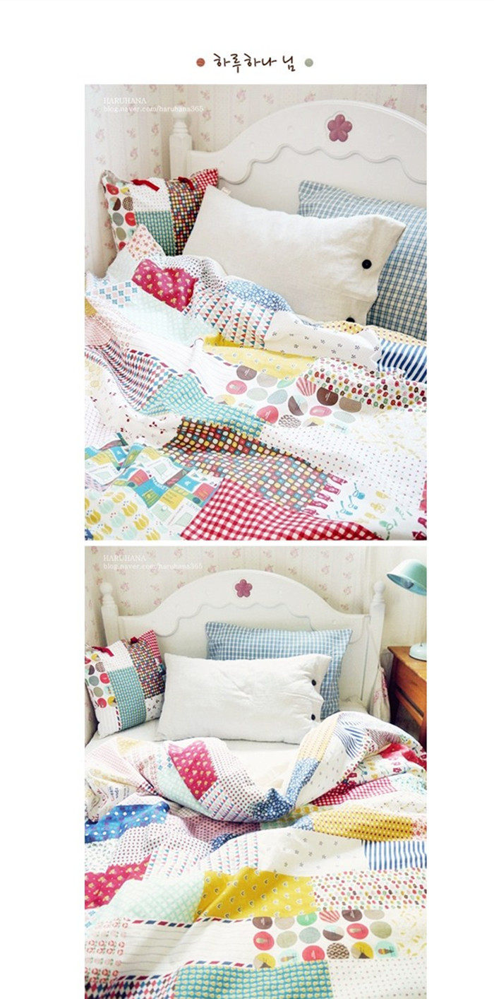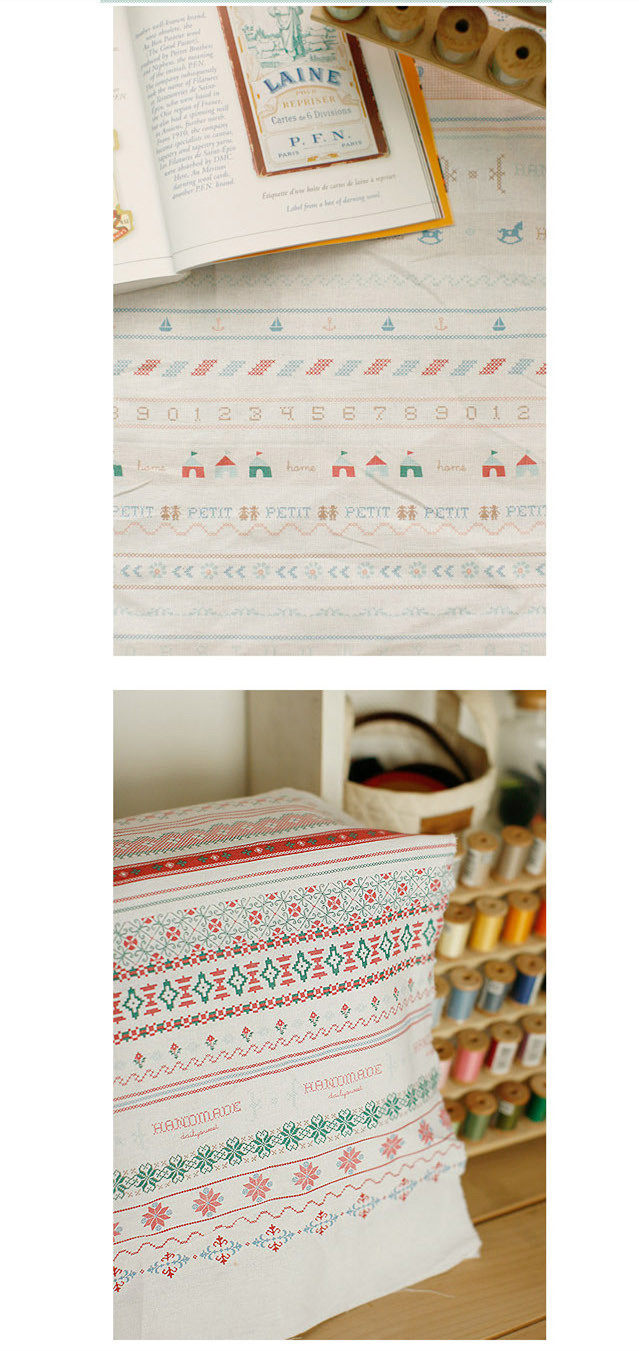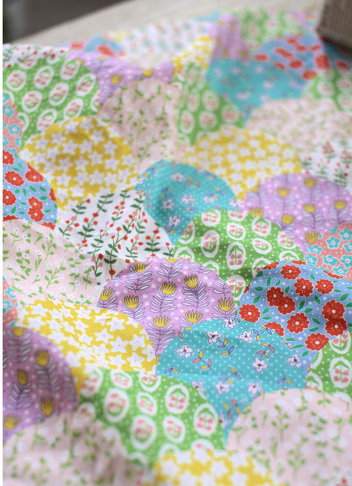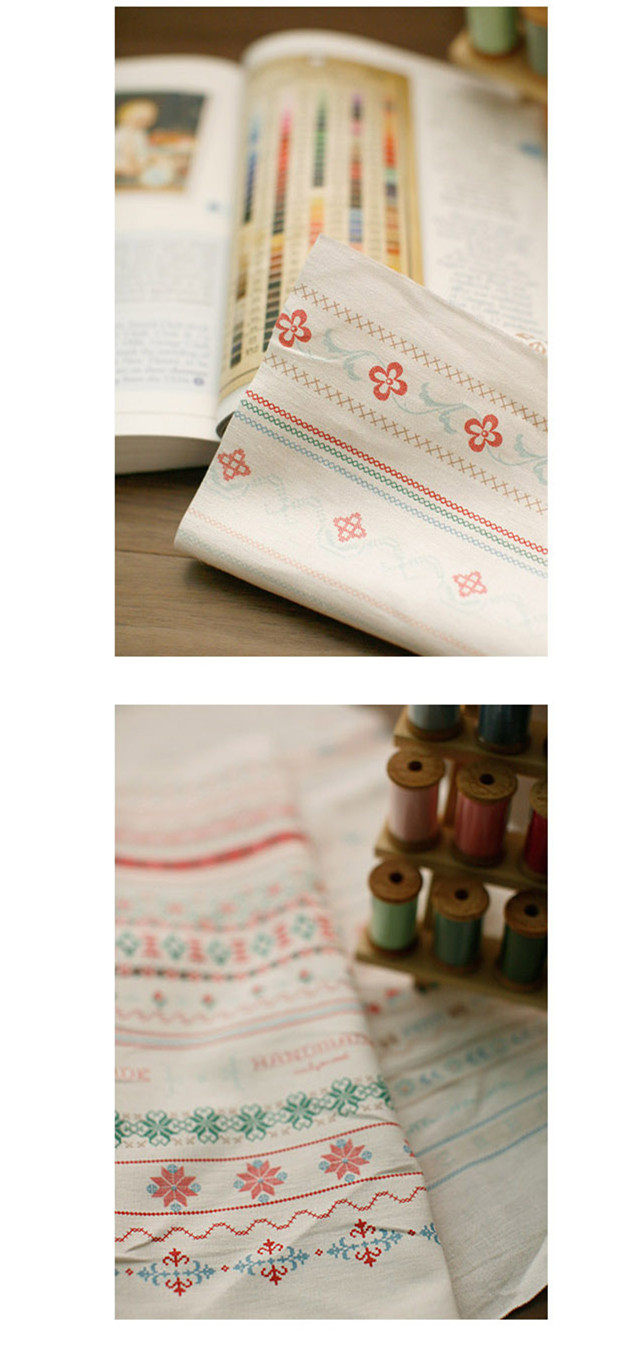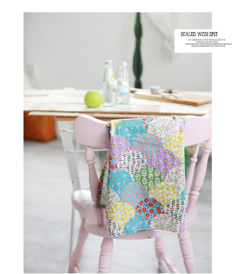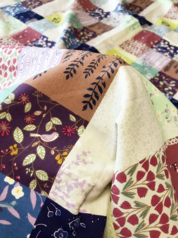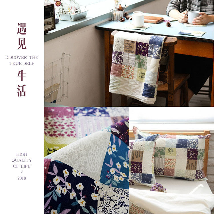 На ощупь он слегка плотный и текстурированный, хлопок и лен ручной работы, умеренная мягкость и твердость, лоскутный узор в ярком пасторальном стиле, цветовая гамма очень красивая, мне она нравится~
