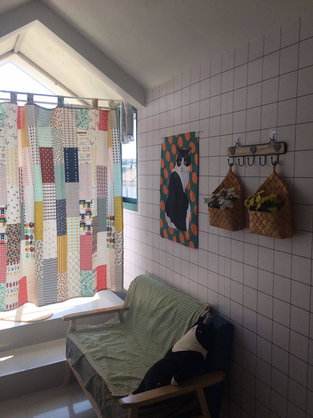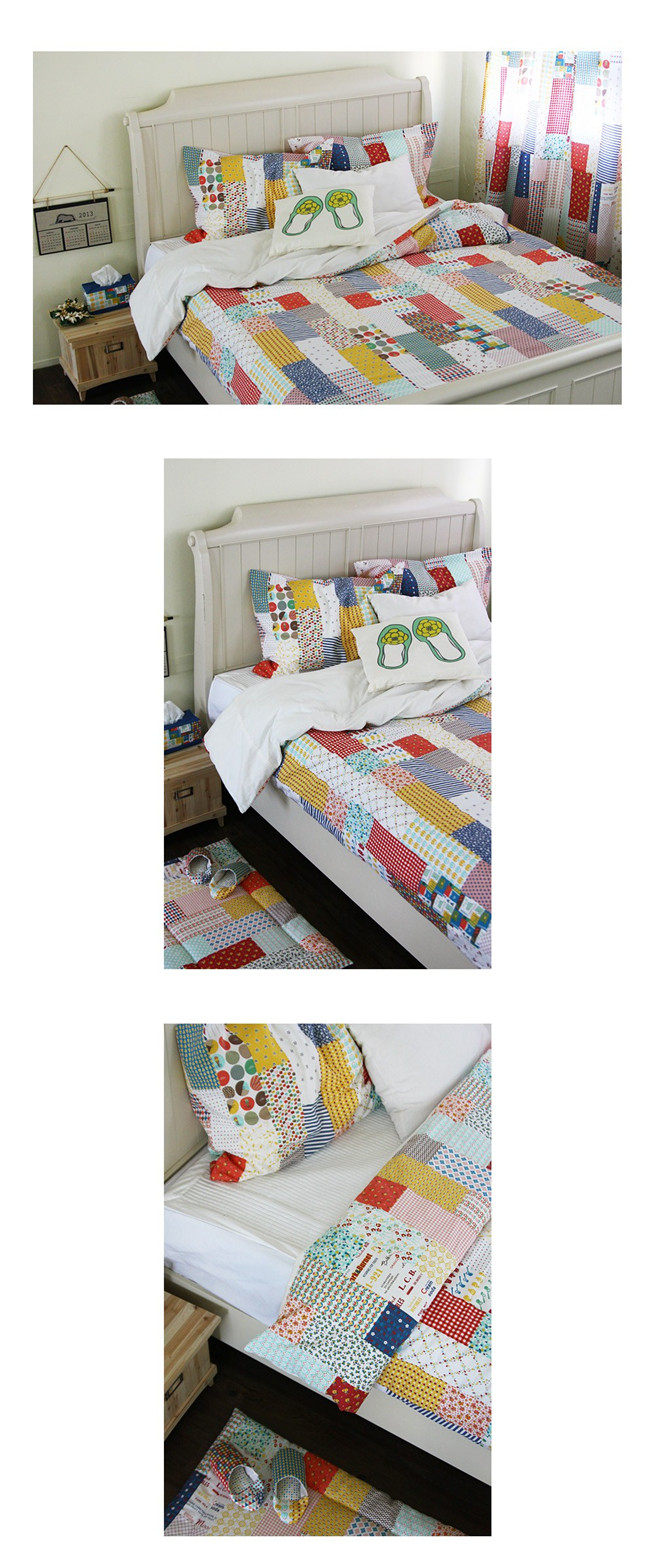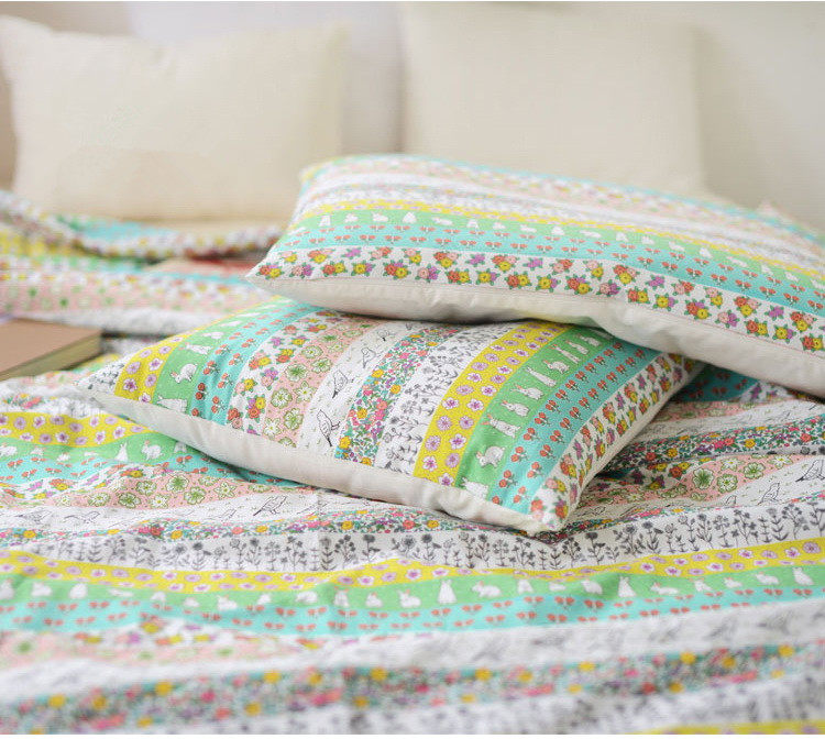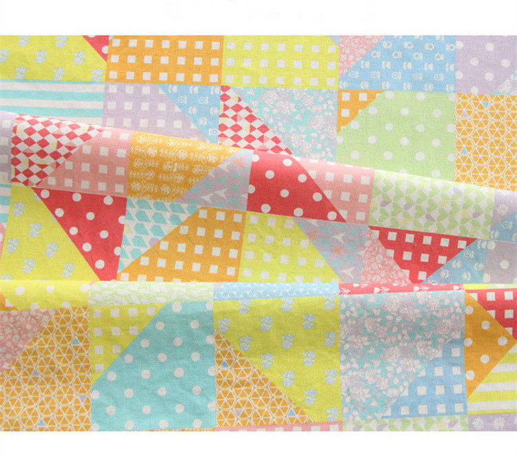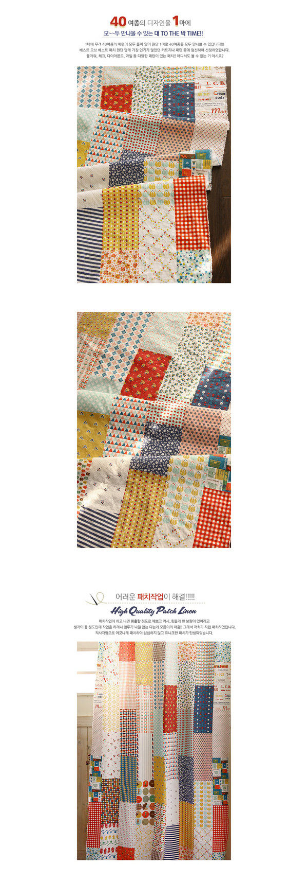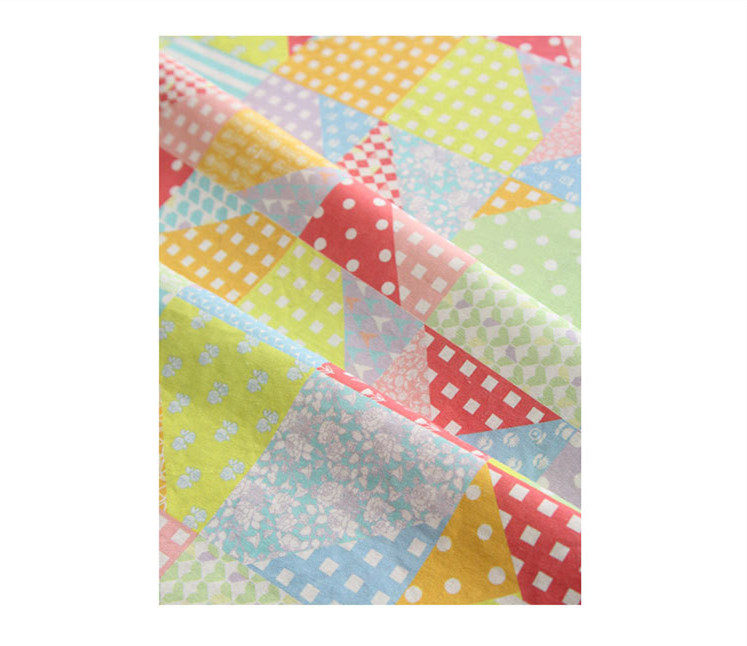На ощупь он слегка плотный и текстурированный, хлопок и лен ручной работы, умеренная мягкость и твердость, лоскутный узор в ярком пасторальном стиле, цветовая гамма очень красивая, мне она нравится~