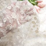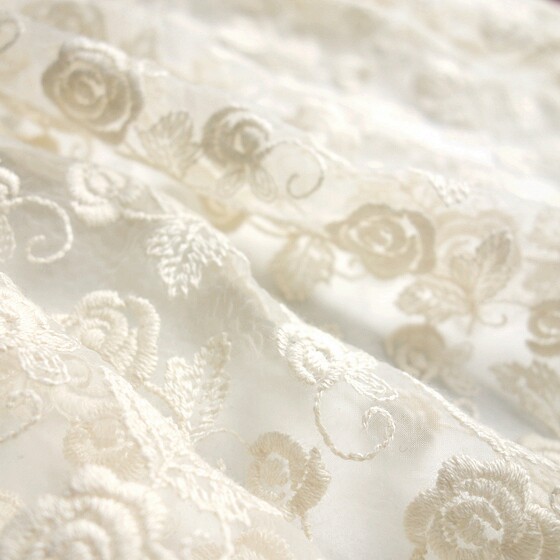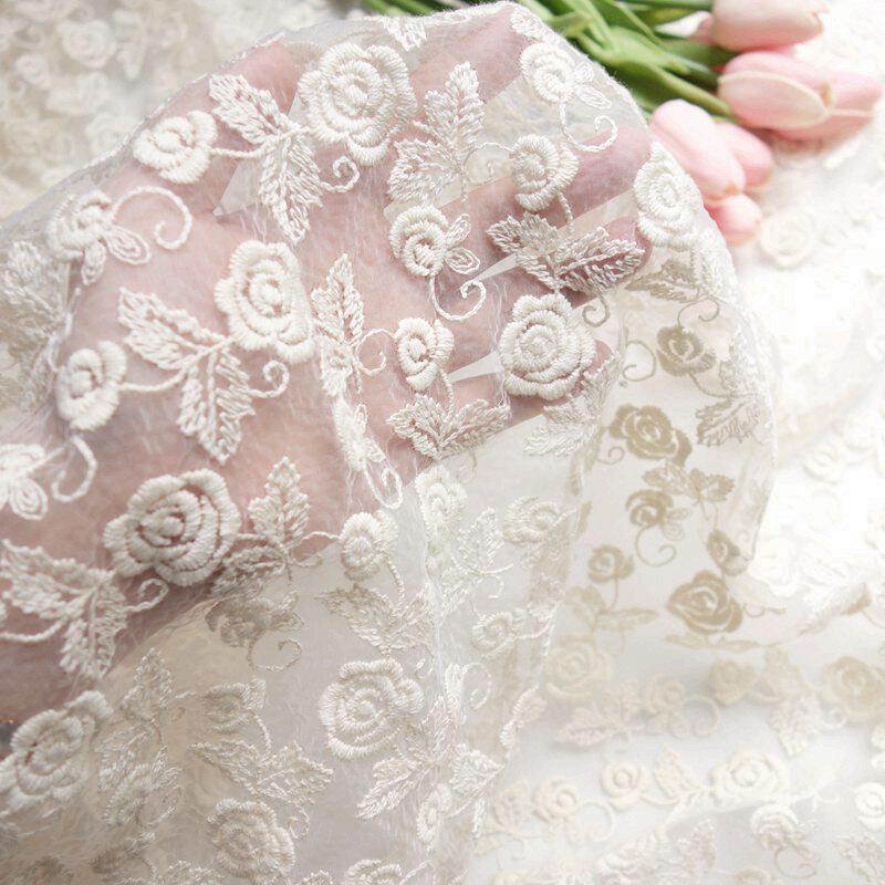Стоимость -Value Taiwan -продукт бежевый ватный ватный проволочный рулон Rose Rose Полная вышивка, морщинистое европейское марлевое платье ткань