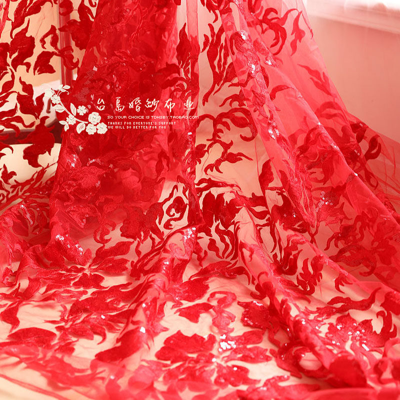 Блестящая кружевная ткань, свадебное платье, с вышивкой