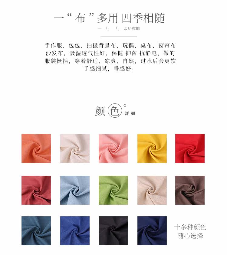 Многоцветная японская ретро ткань, с вышивкой, из хлопка и льна