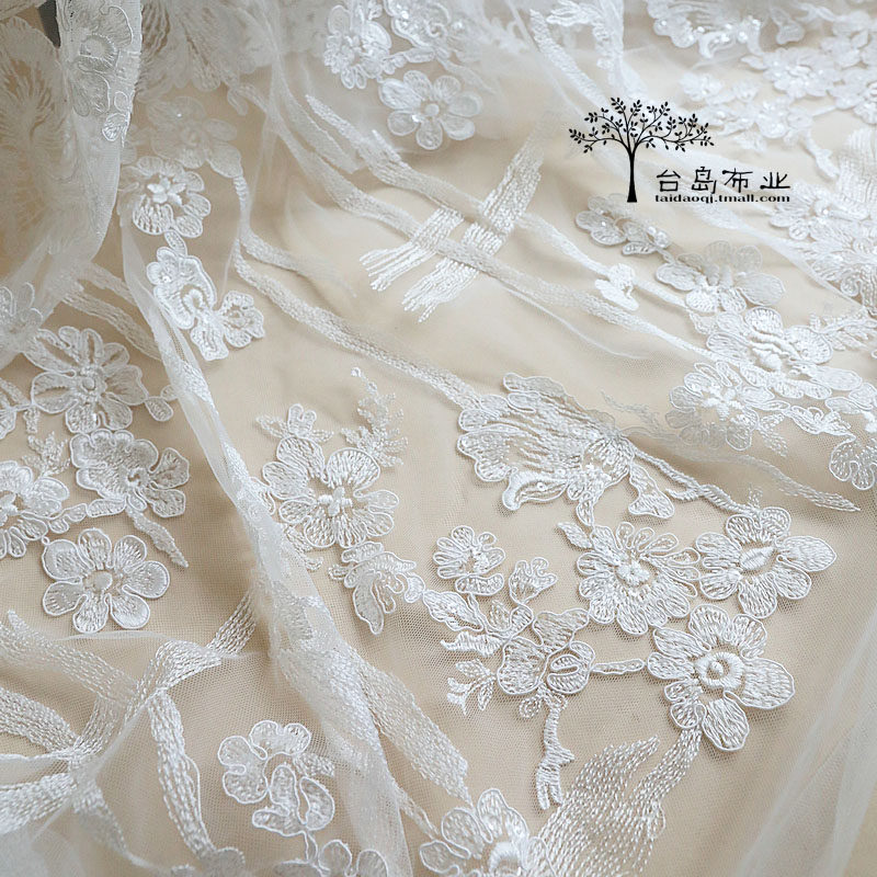Кружевная ткань, кружевное свадебное платье, с вышивкой, цвет слоновой кости