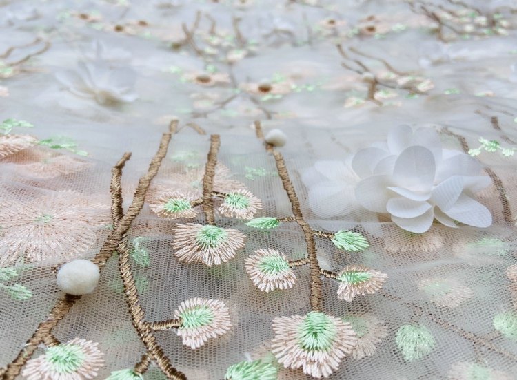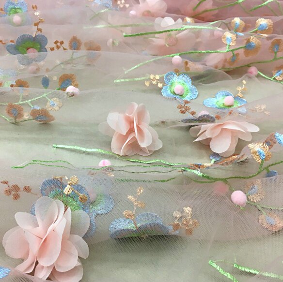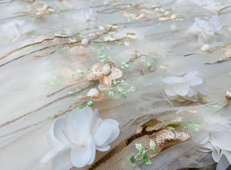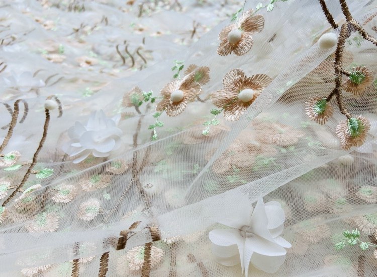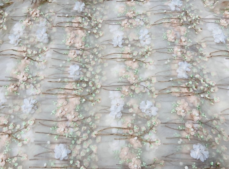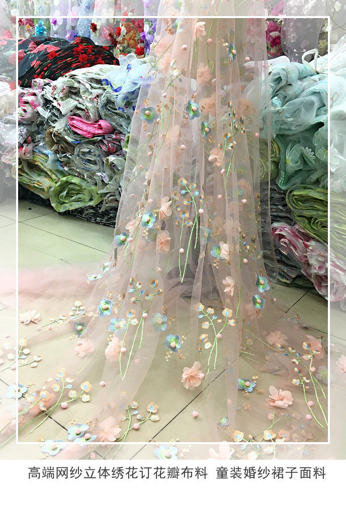 Мягкая трехмерная кружевная ткань, бусины, юбка, (в наличии на складе), с вышивкой
