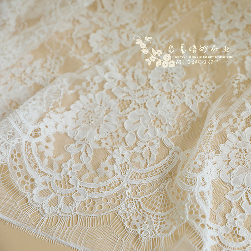 Кружевная ткань с французскими костяными ресницами цвета слоновой кости