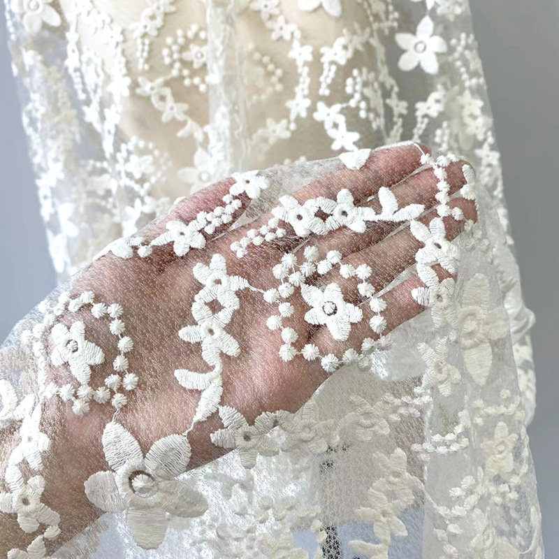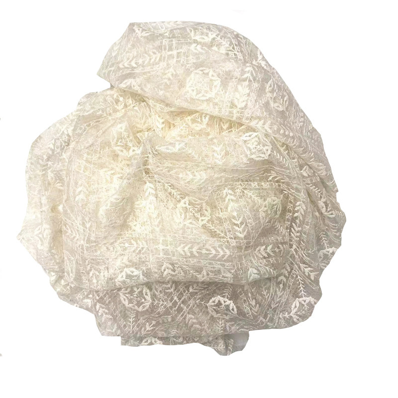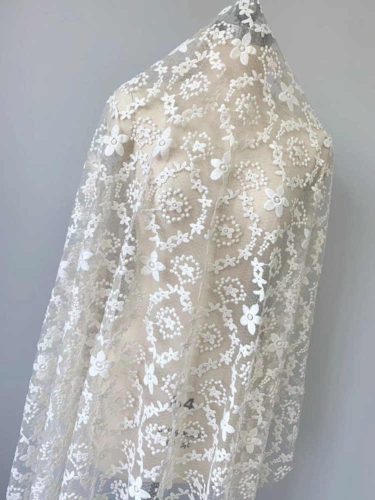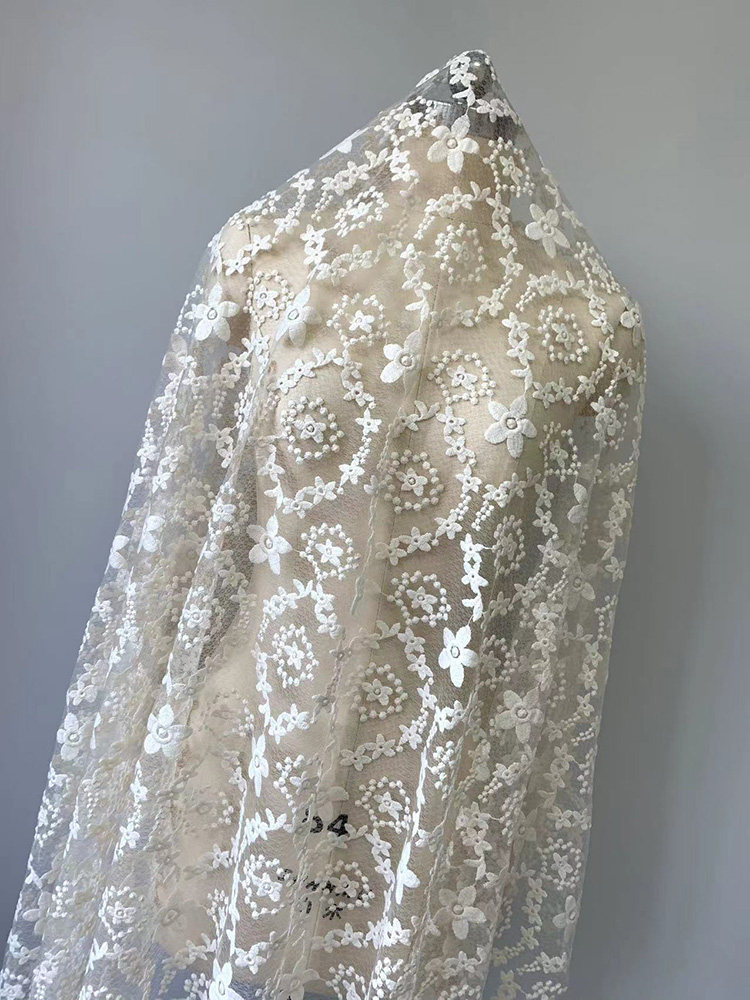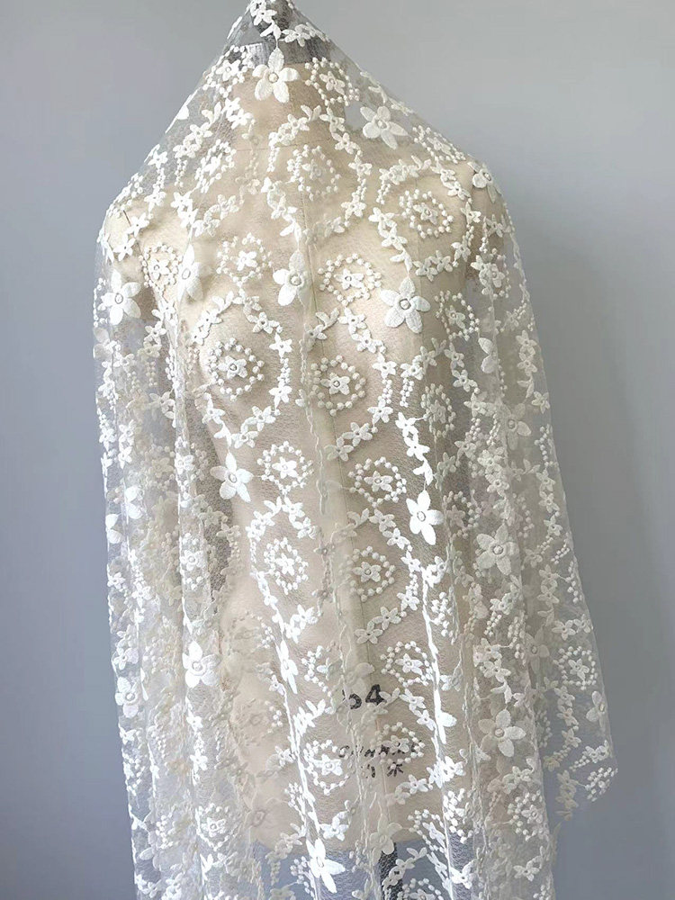 Бежевая кружевная ткань, с вышивкой