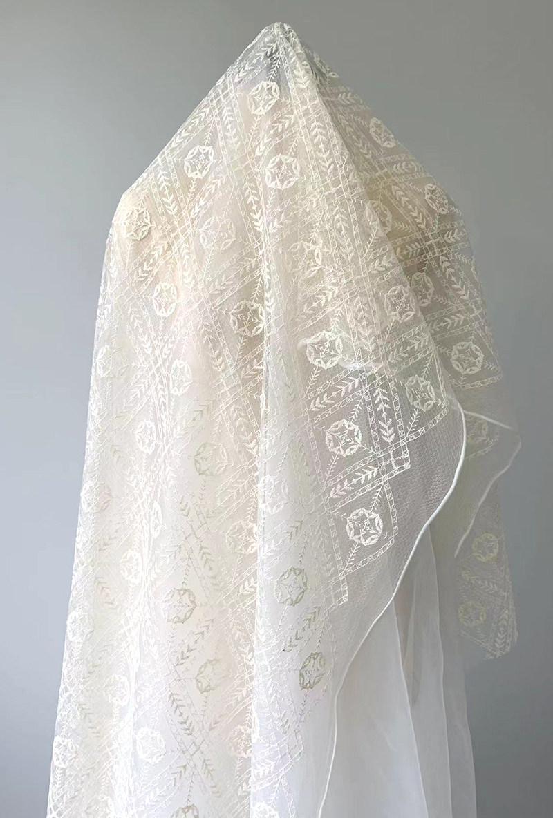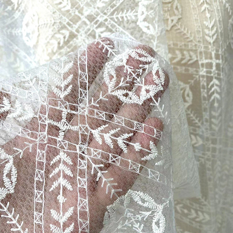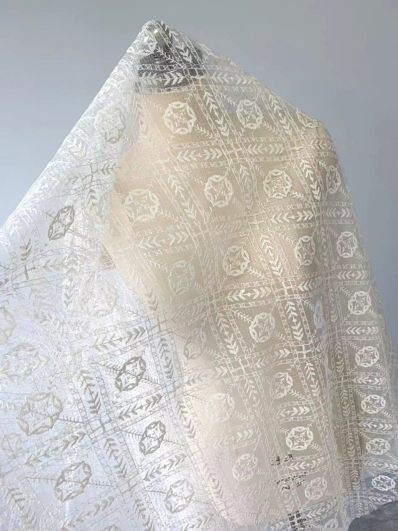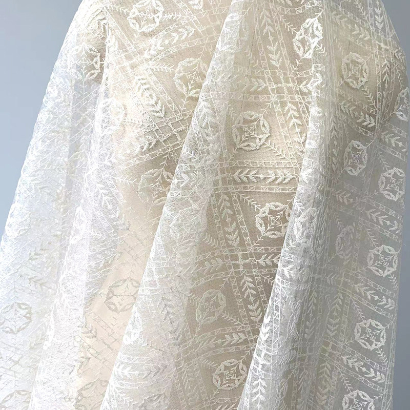 Бежевая кружевная ткань, с вышивкой