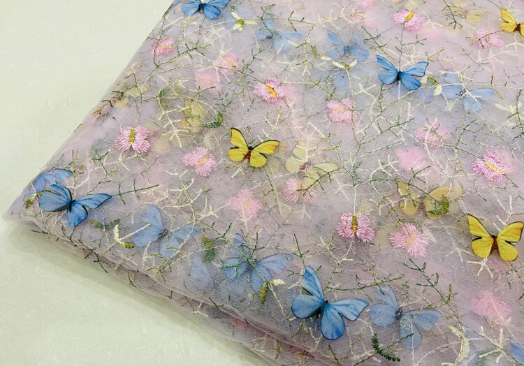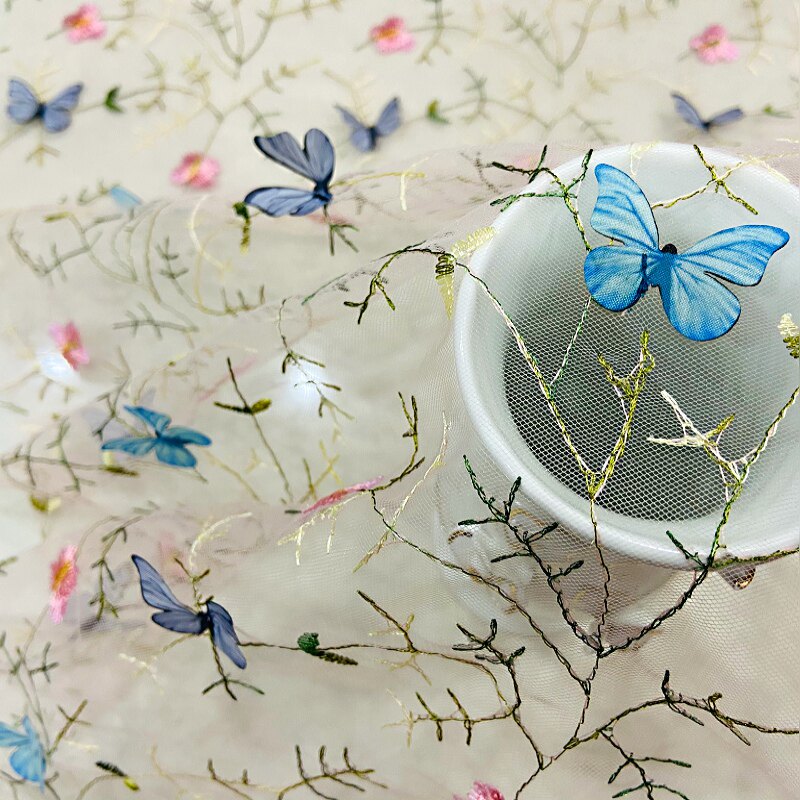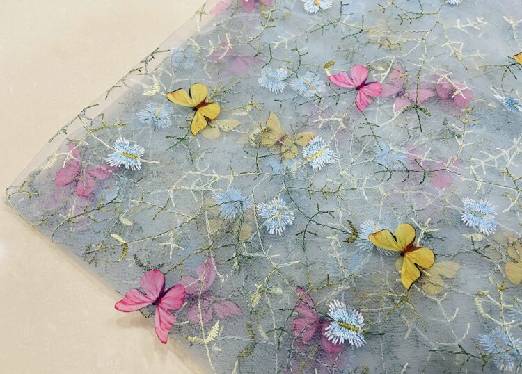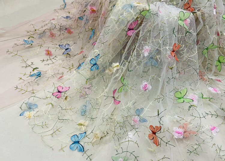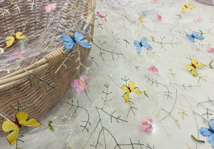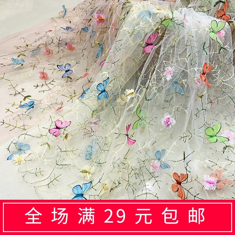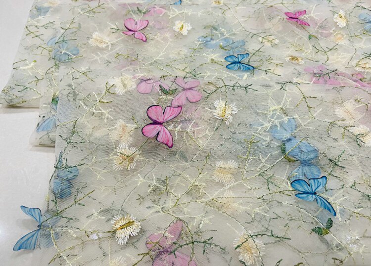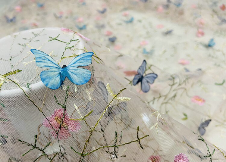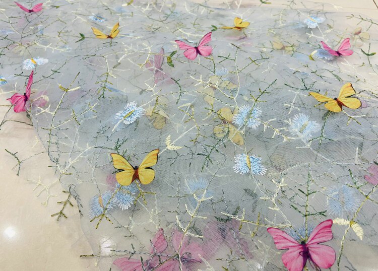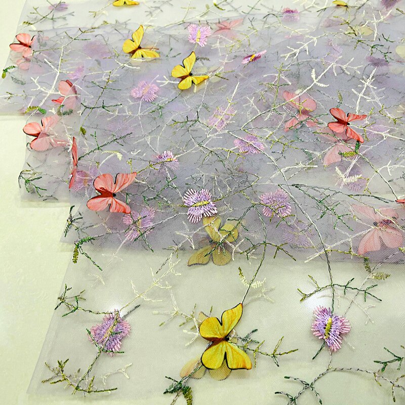 Тонкое мягкое сетчатое кружево, вышивка водной травой, трехмерная ткань для одежды ручной работы с бабочками, ткань для юбки и детской одежды.