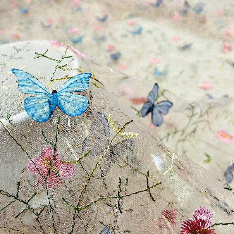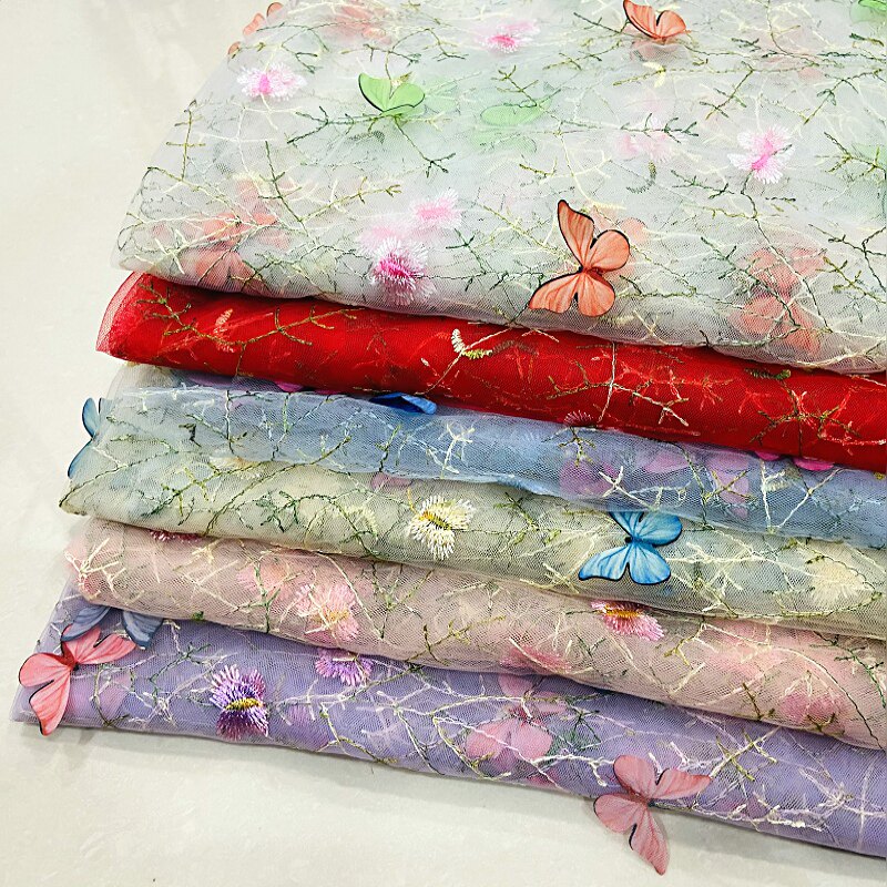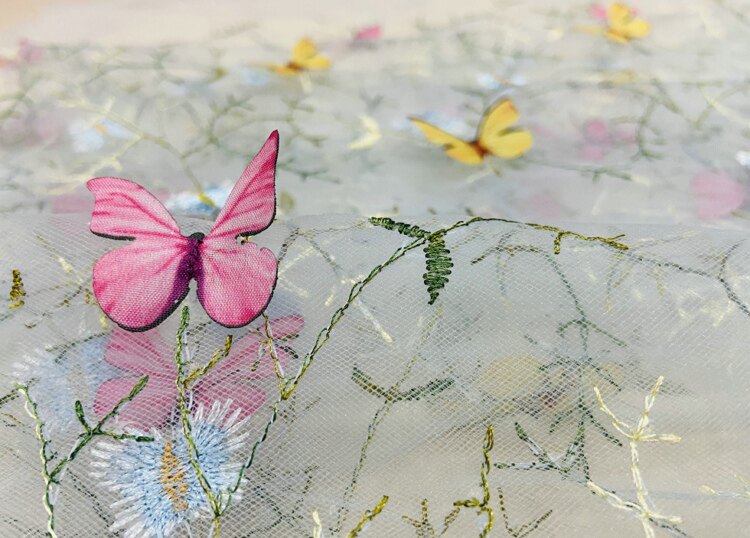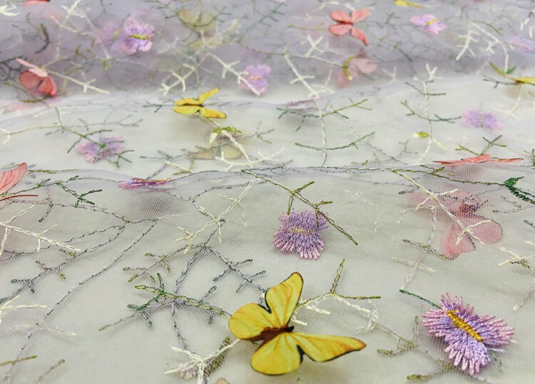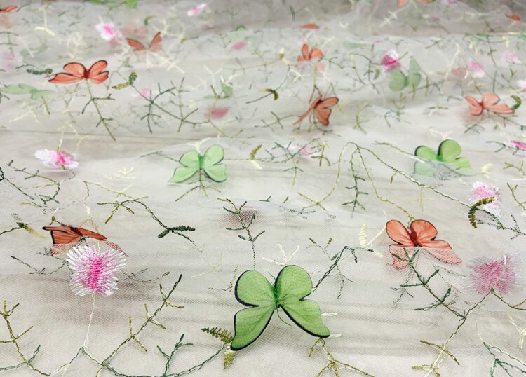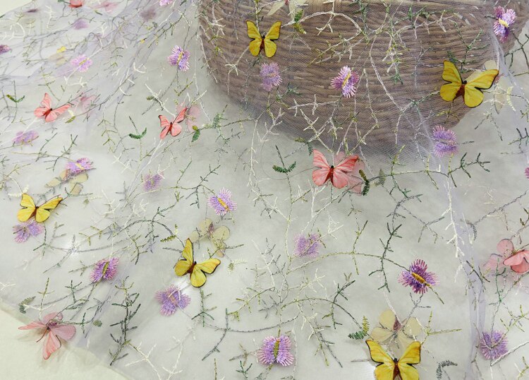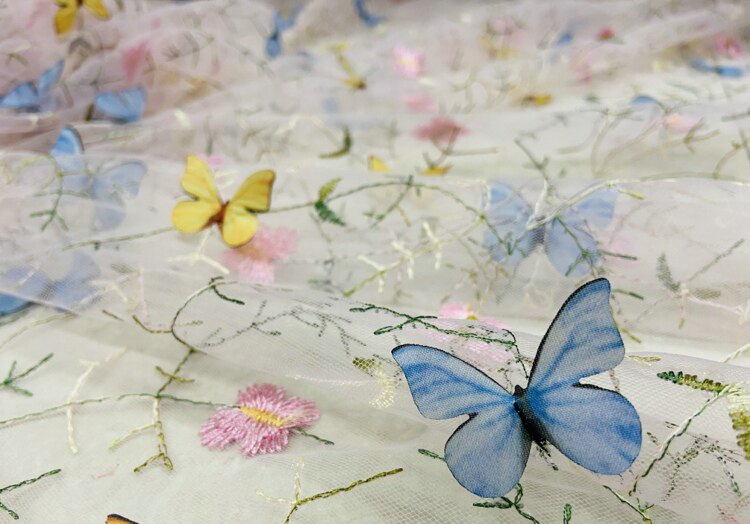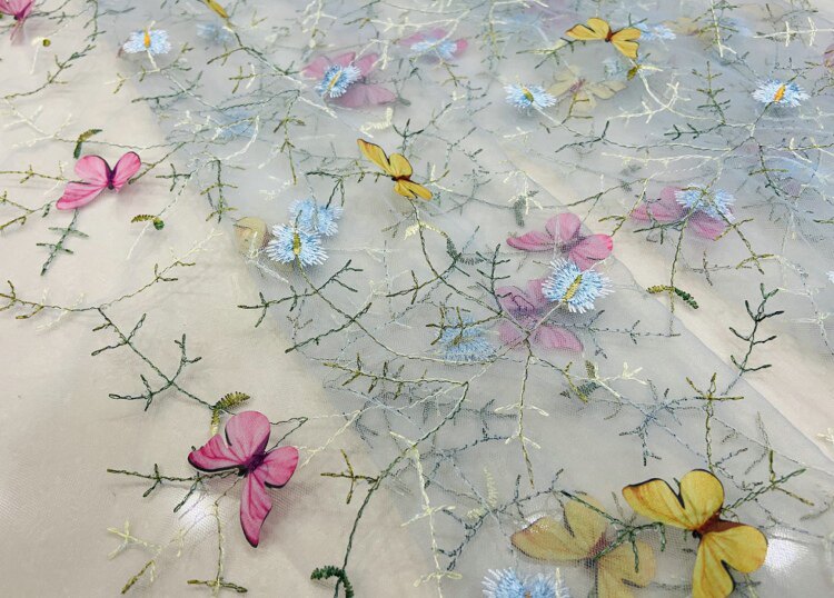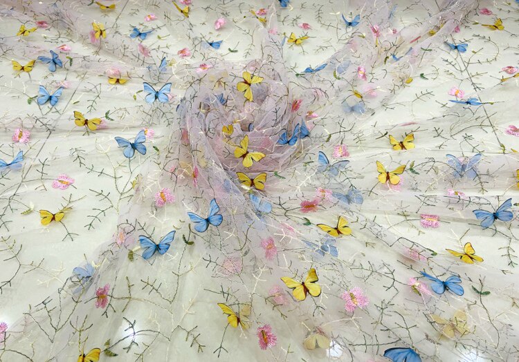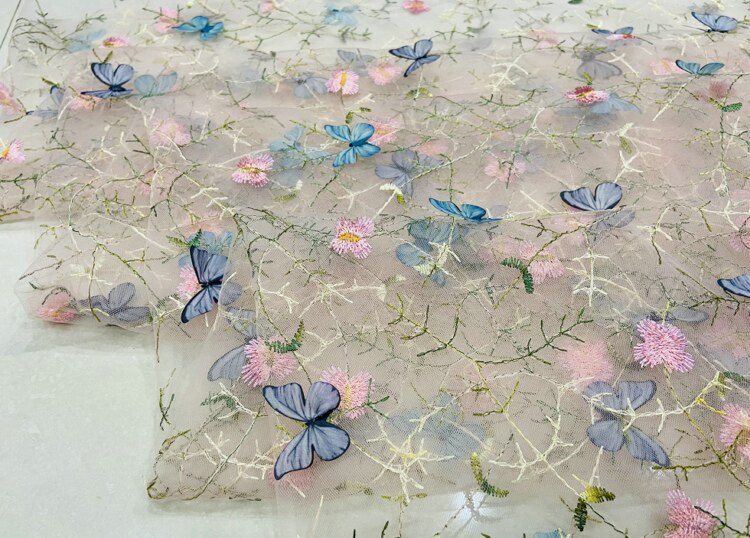Тонкое мягкое сетчатое кружево, вышивка водной травой, трехмерная ткань для одежды ручной работы с бабочками, ткань для юбки и детской одежды.