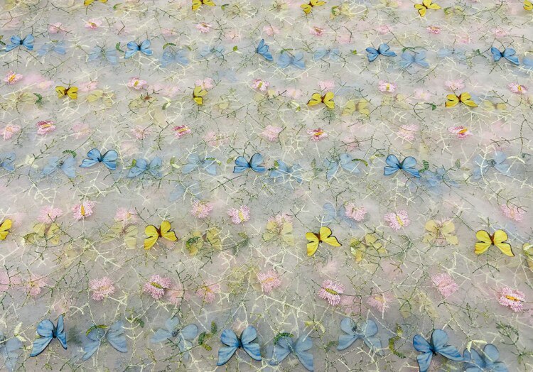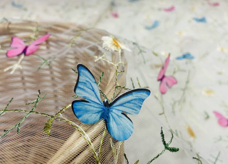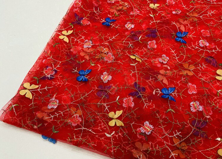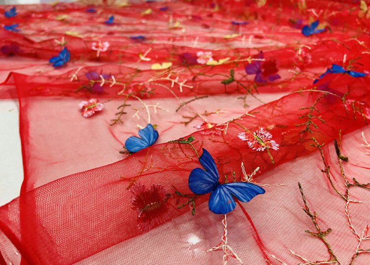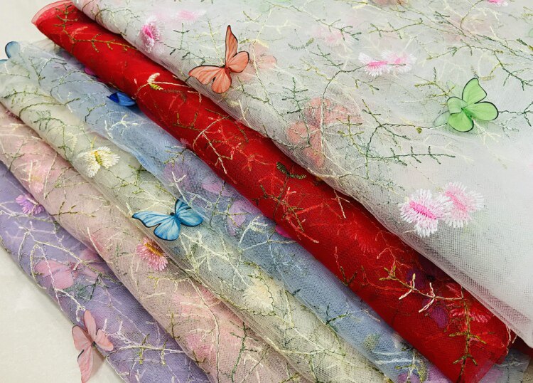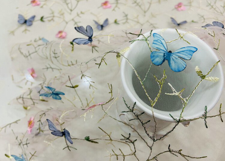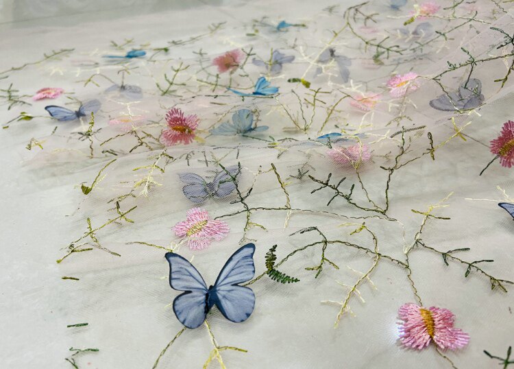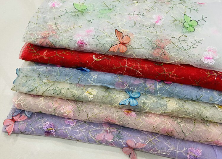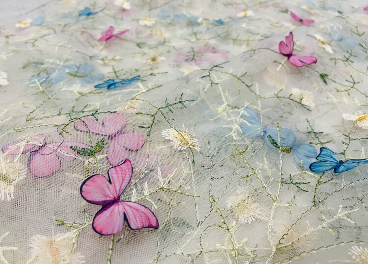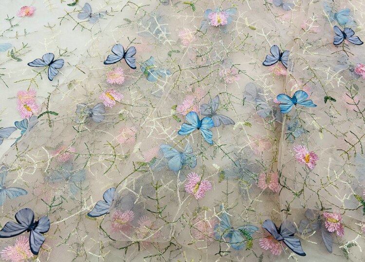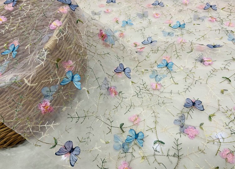Тонкое мягкое сетчатое кружево, вышивка водной травой, трехмерная ткань для одежды ручной работы с бабочками, ткань для юбки и детской одежды.