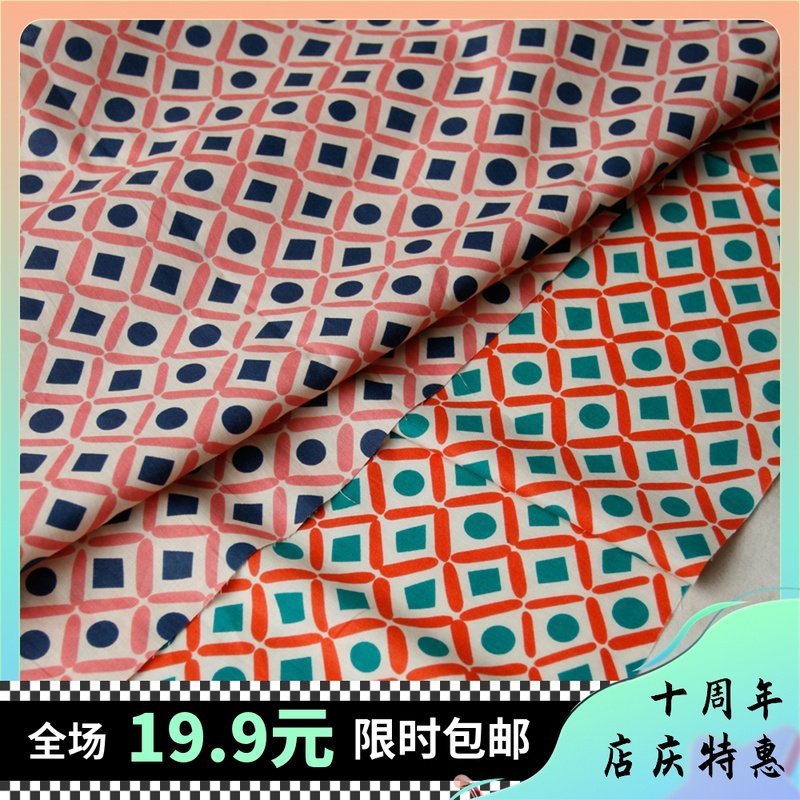 Попохаус ретро Сиэтл Геометрический геометрический рисунок шелковая хлопчатобумажная рубашка платья платья одежда пища