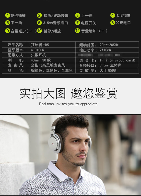 Фанатичная голова в музыке Bluetooth гарнитура беспроводной компьютер универсальная карта -всеобъемлющий бас для ушей