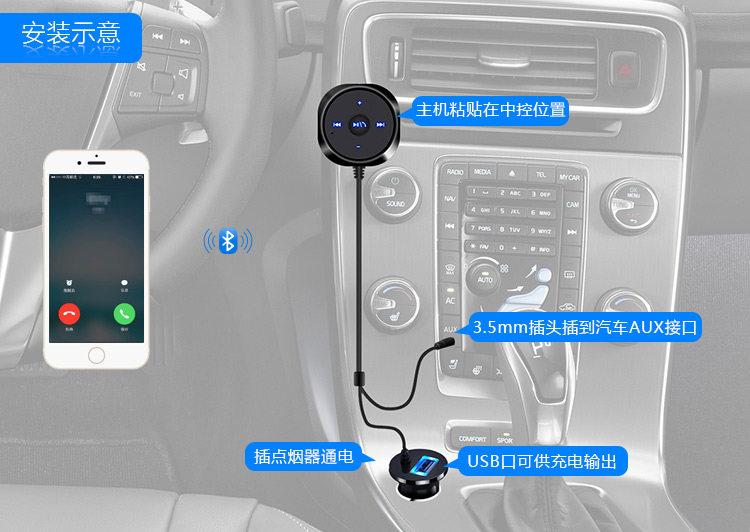● Поместите звонки, как вы обычно делаете на своем телефоне, и звук звонка будет услышан через вашу автомобильную стереосистему. Позвоните, как мобильный телефон, вы услышите аудио телефона через стерео звуковую систему автомобиля.