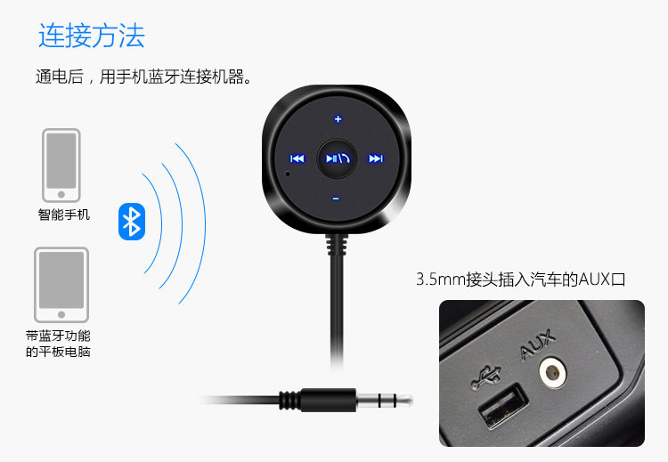 – Играйте в свой смартфон, iPad, iPod, и дождитесь музыки на устройстве продукта Bluetooth, вы можете позволить вам воспроизводить музыку на вашем интеллектуальном устройстве одновременно из вашего автомобильного звука беспроводным образом!
