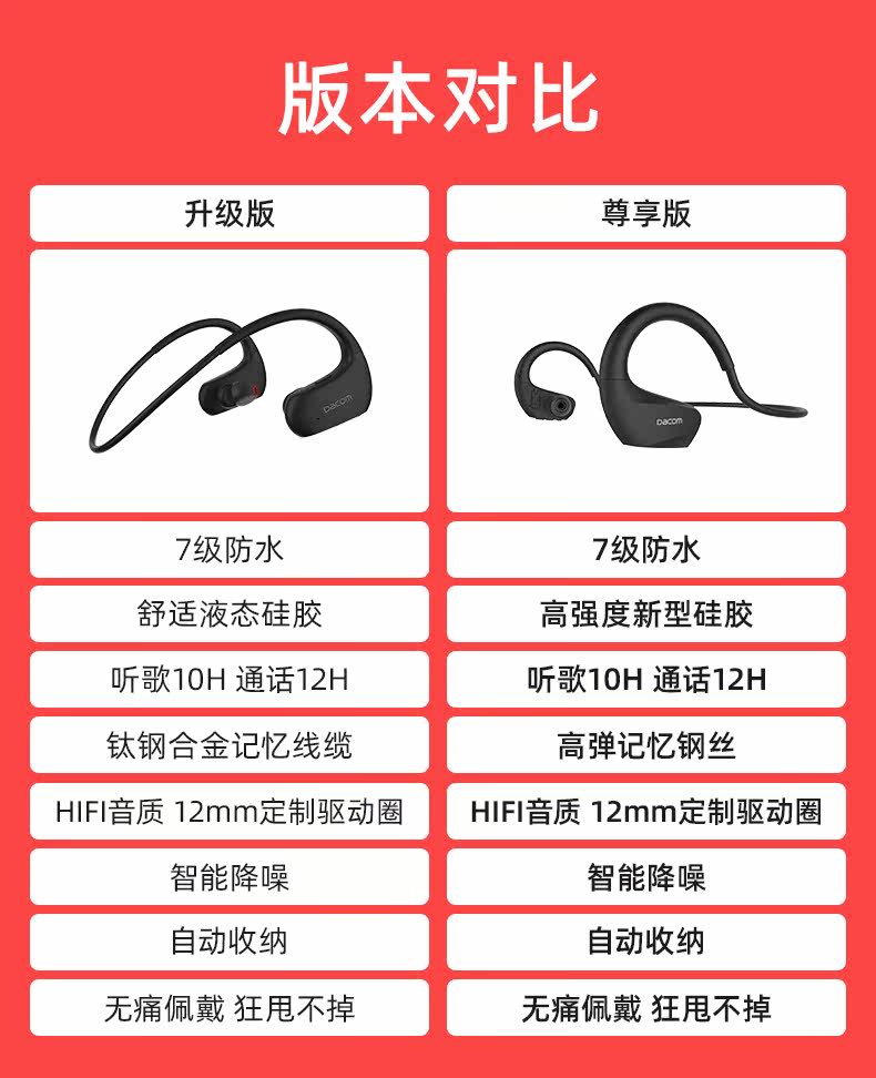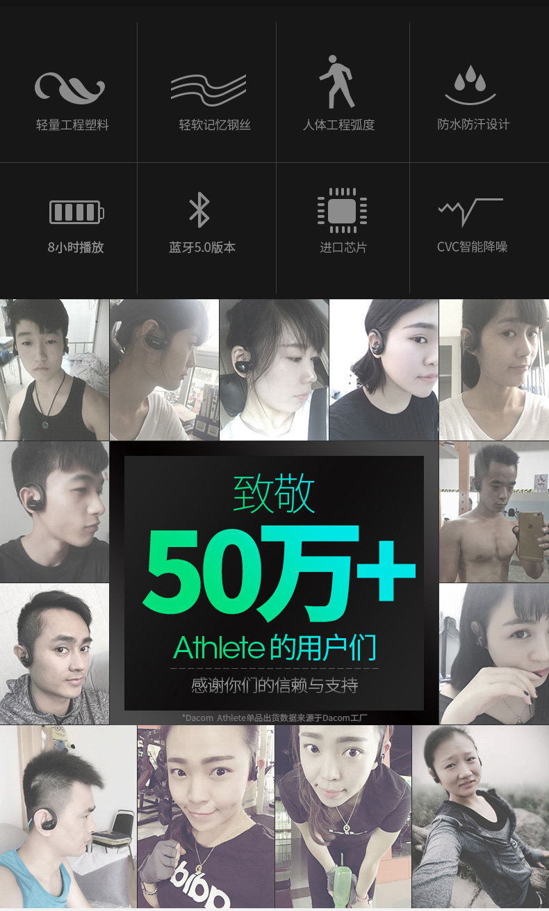 DACOM Спортивная беговая гарнитура Bluetooth носит длинные, без боли, водонепроницаемой, пота и висящей шеи в ухо с двойной подключением