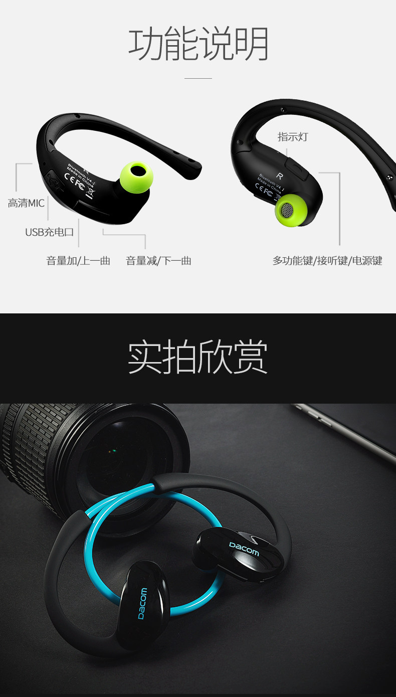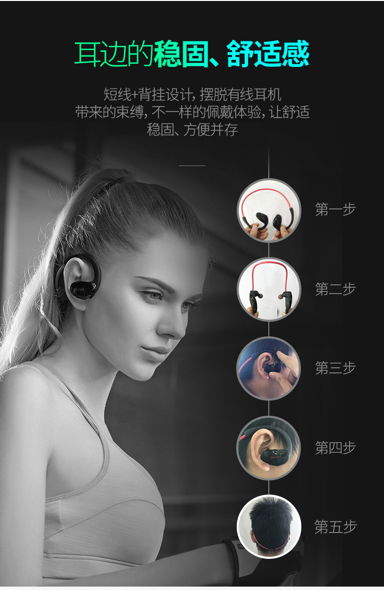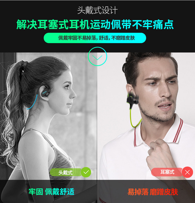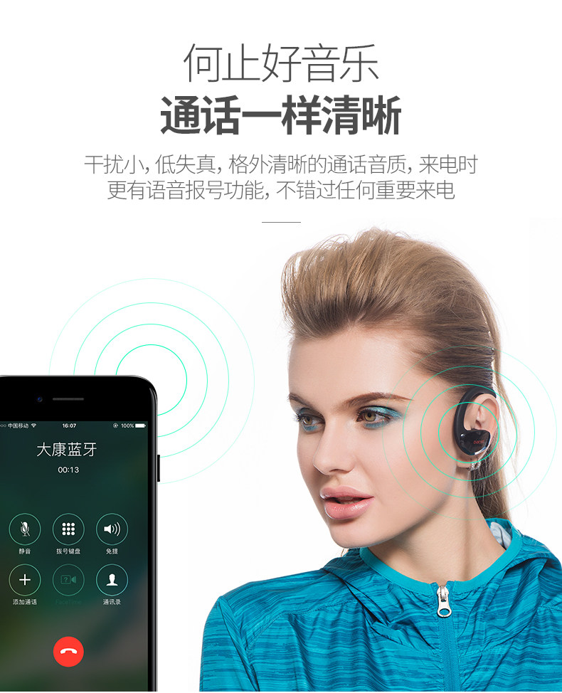 Движение Bluetooth -гарнитуры с двойным потом и водонепроницаемым смартфоном Universal Oppo Douyin Слушание песен