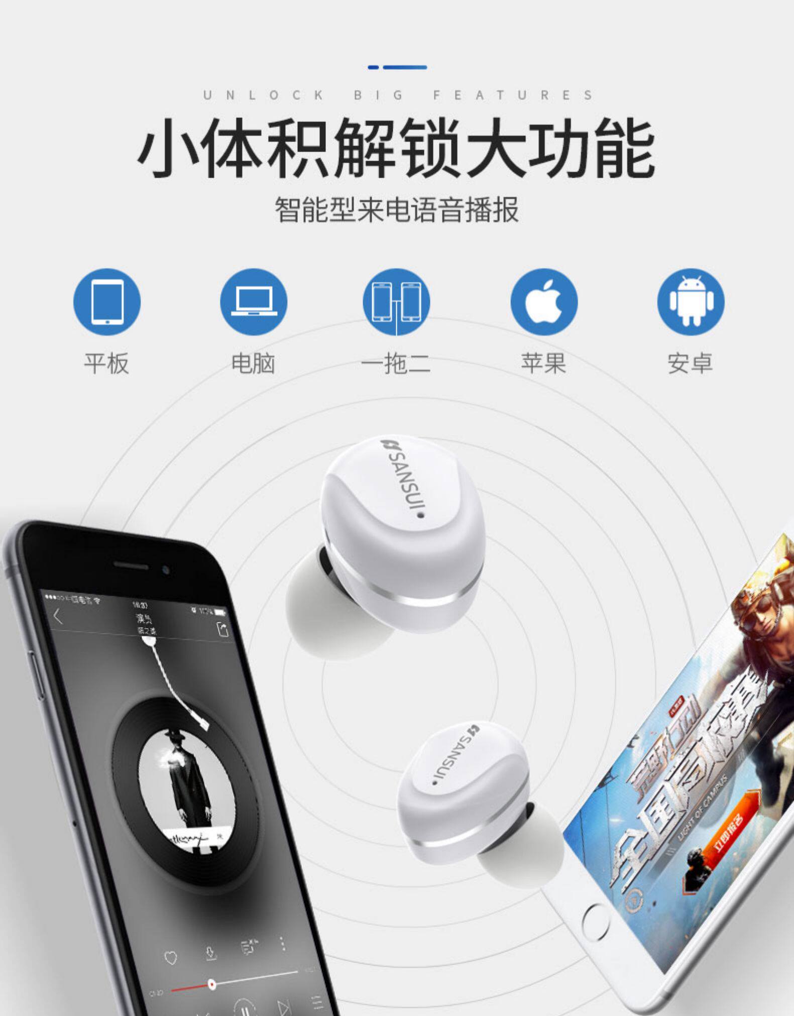 Tmall, sansui, apple, маленькие наушники подходит для мужчин и женщин, невидимые водонепроницаемые беспроводные беруши, мобильный телефон, intel core i17, bluetooth