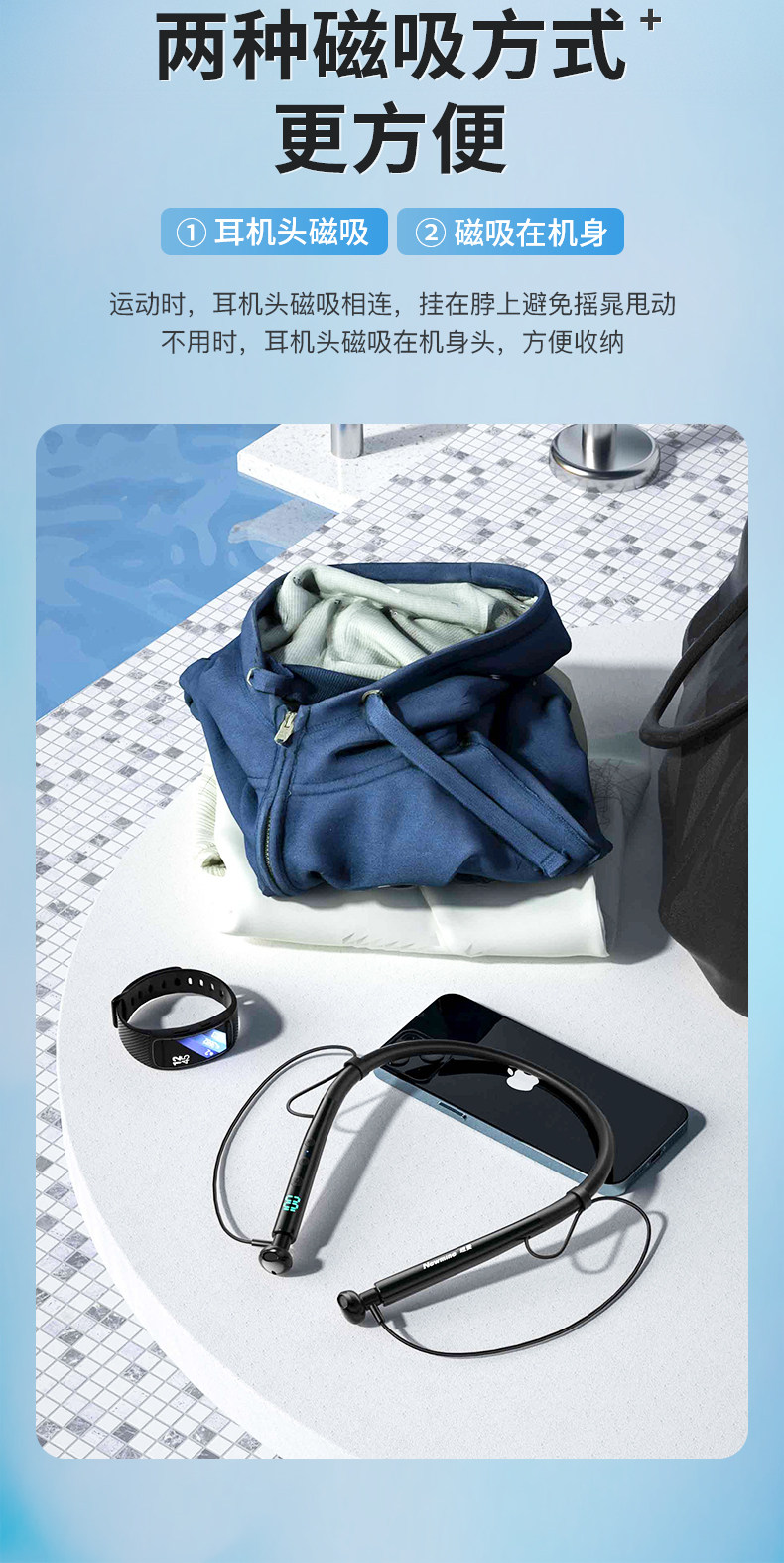 纽曼 Беспроводные проводные спортивные наушники Bluetooth с креплением на голове и шейным креплением для мужчин, подходящие для Apple 𬞟fruit Android, сверхдолгий режим ожидания