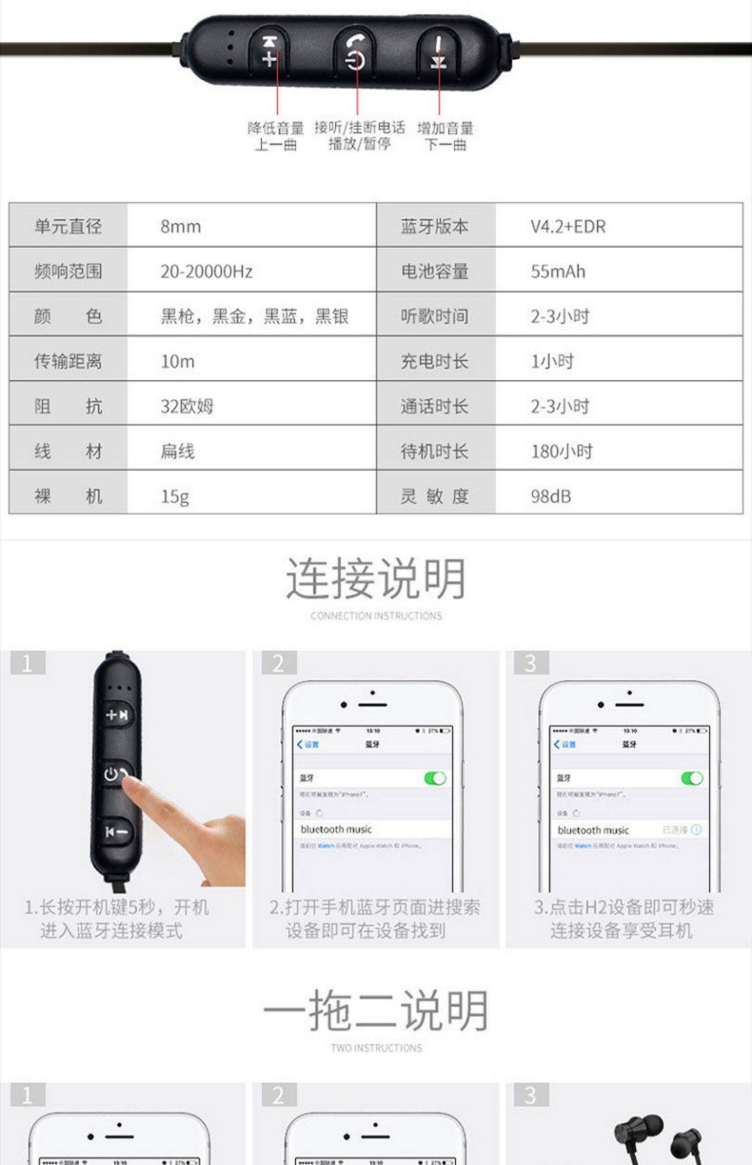 绿殷荞 Магнитная блюэтут гарнитура беспроводной беговой спорт