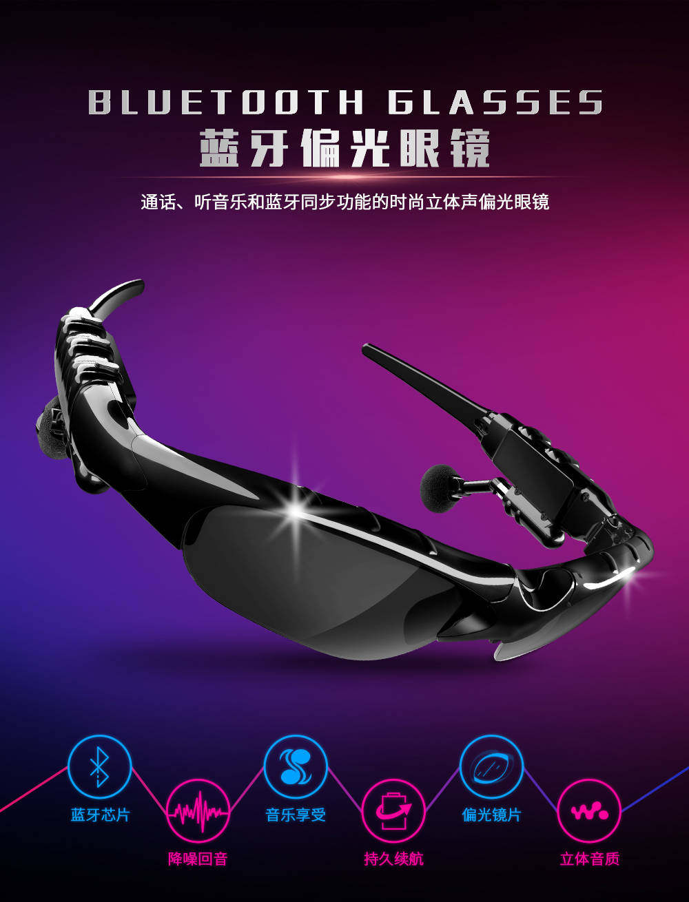 Беспроводные умные наушники, универсальные солнцезащитные очки на солнечной энергии, bluetooth