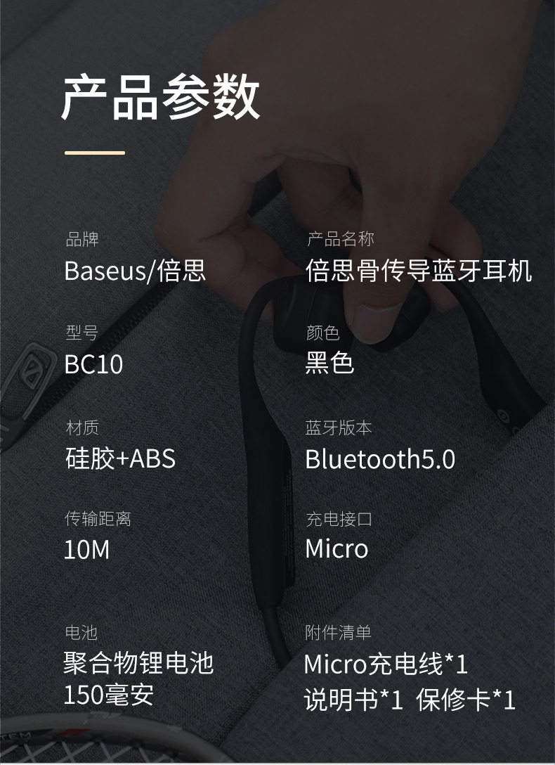 | Цвет: | Bluetooth-гарнитура Baseus BC10 с датчиком костей, черная |