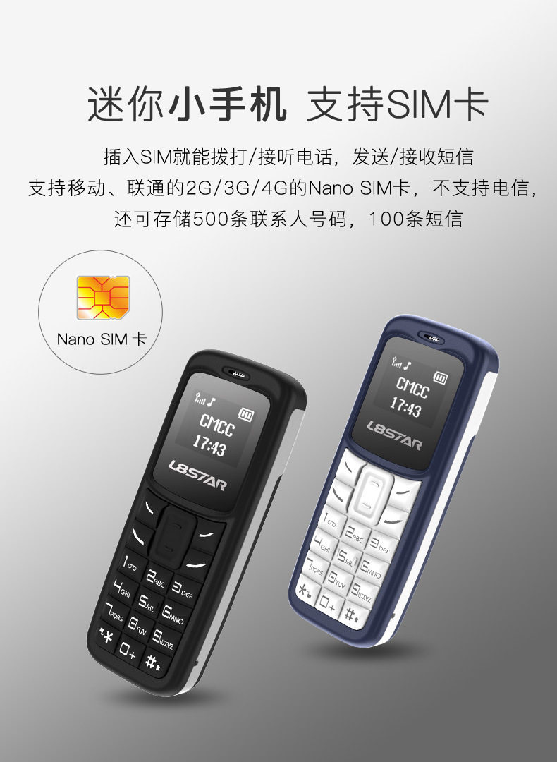 Новый мини -телефон L8Star BM30,Поддерживается только для мобильного (одиночная карта), не поддерживает телекоммуникационные карты, поддерживает расширение карт памяти (максимум 32 ГБ), поддерживает Bluetooth -набор, воспроизведение музыки, 500 телефонных книг, 100 текстовых сообщений, волшебные голосовые вызовы.Полем Полем