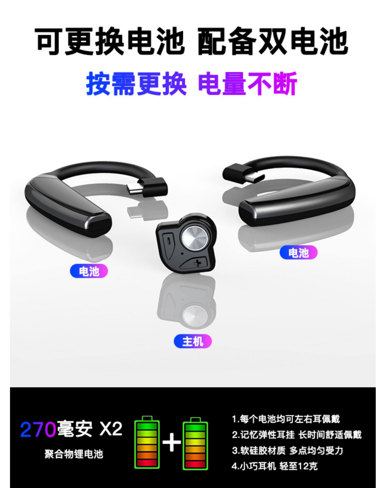 Безболезненная гарнитура Bluetooth можно заменить на двойной батареи, подвесной для ушей беспроводной длинный драйвер самолета, водитель самолета