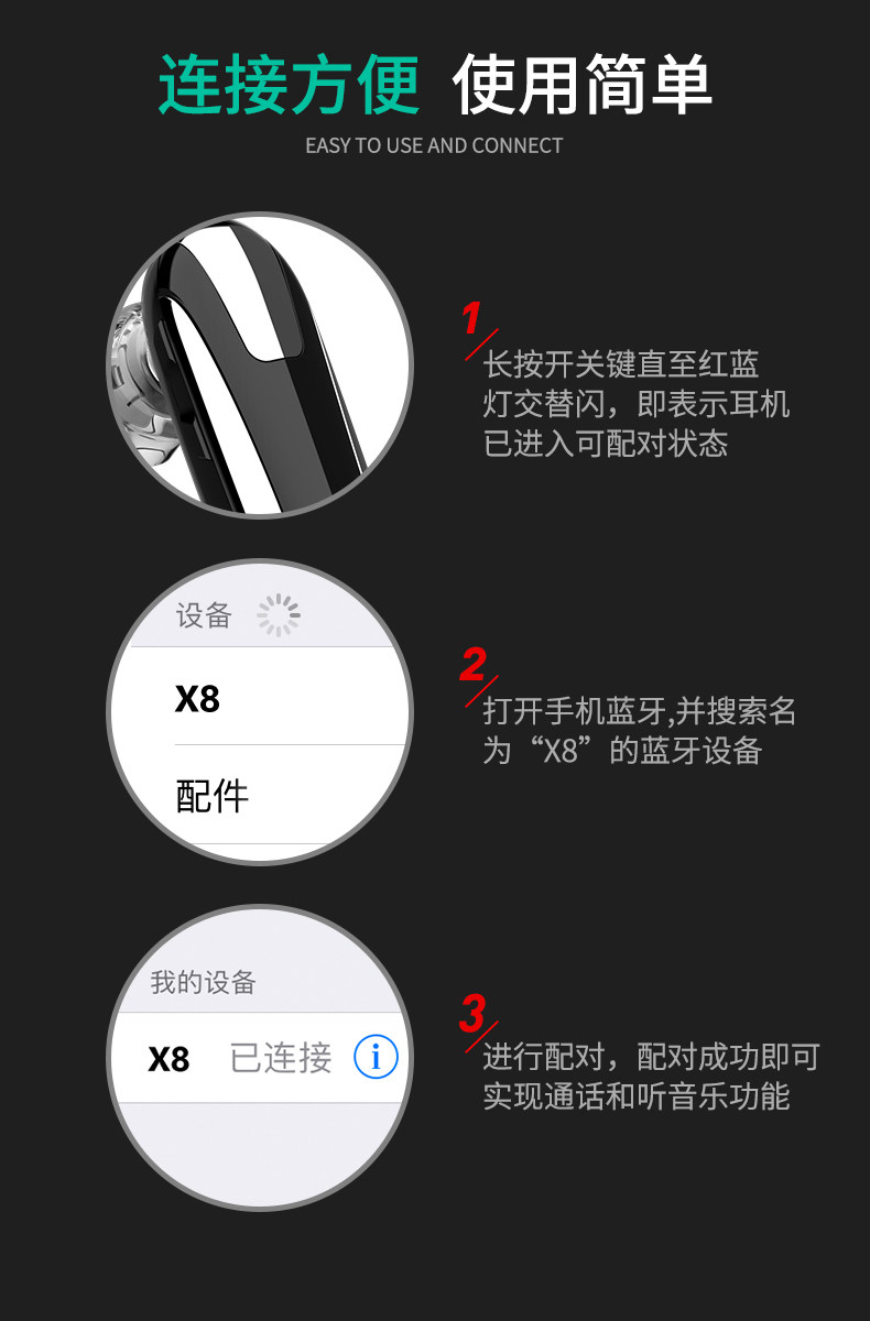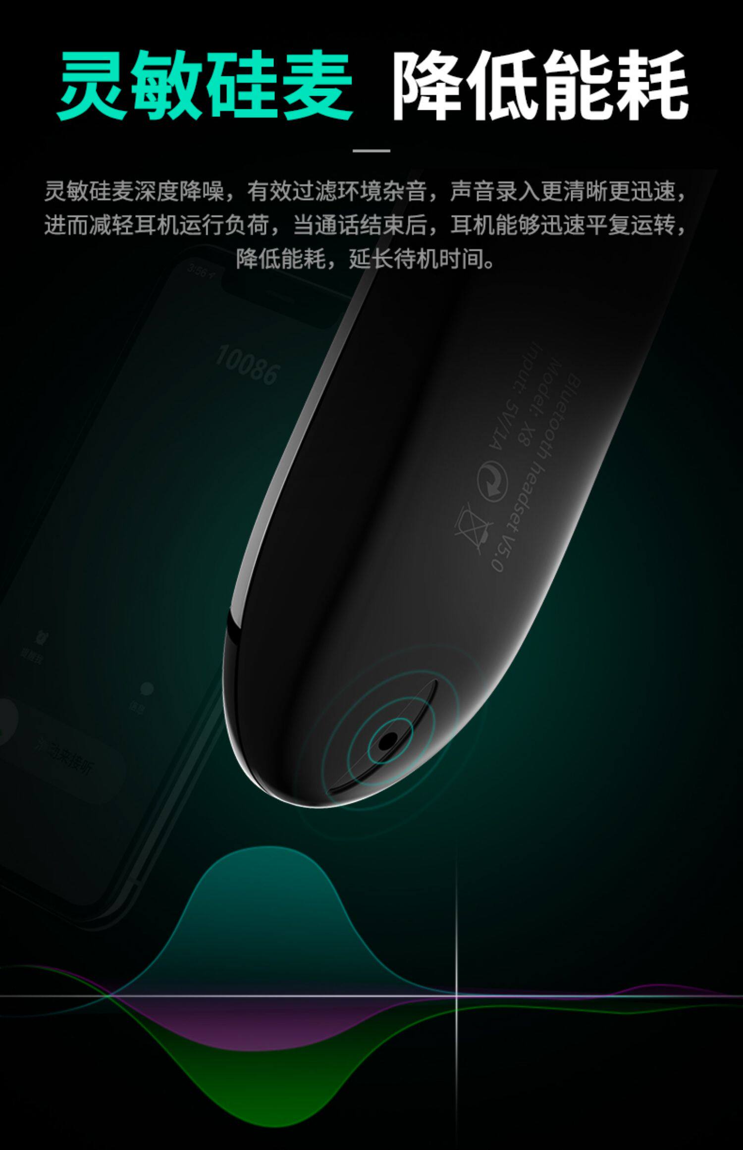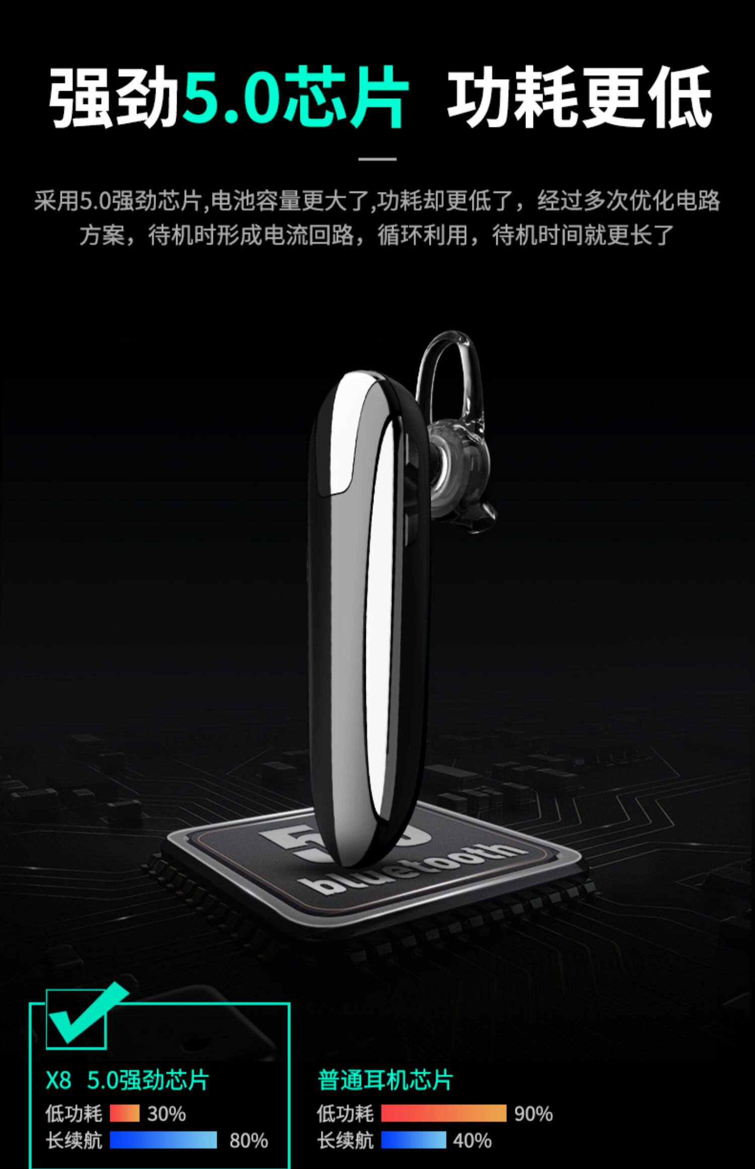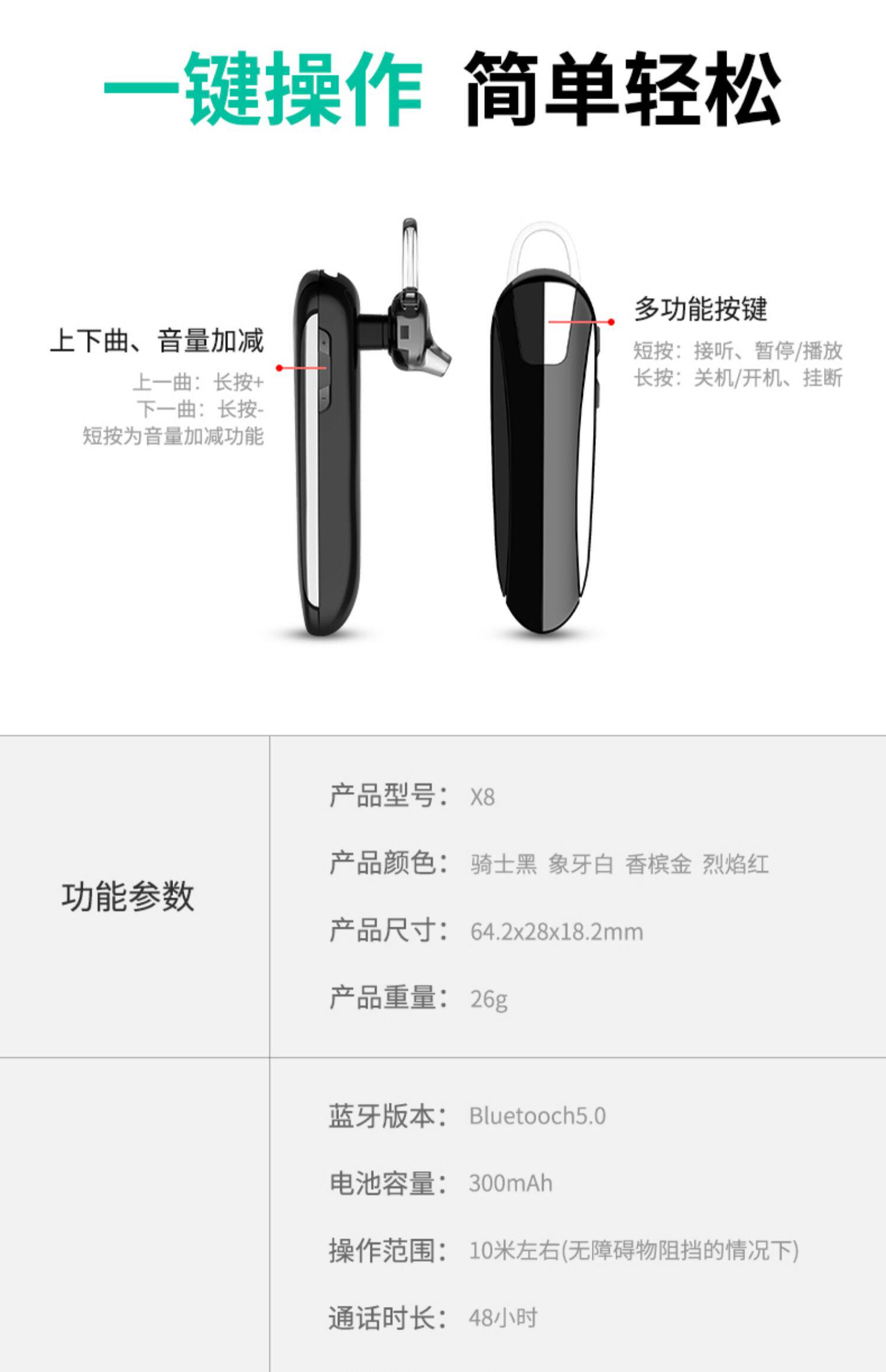 Подходит для мобильного телефона Samsung, универсальная Bluetooth-гарнитура Galaxy/Note10855, водонепроницаемая, со сверхдлительным режимом ожидания, мини с одним ухом