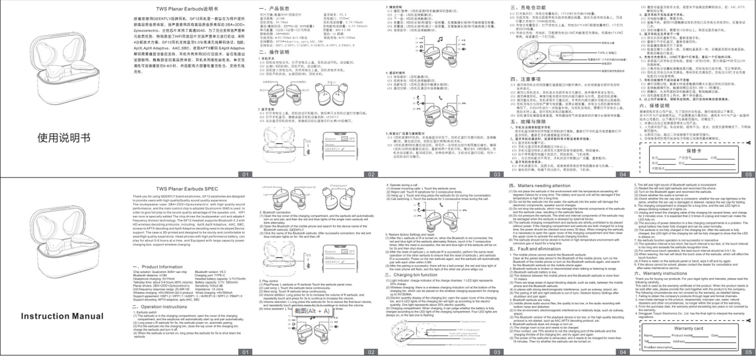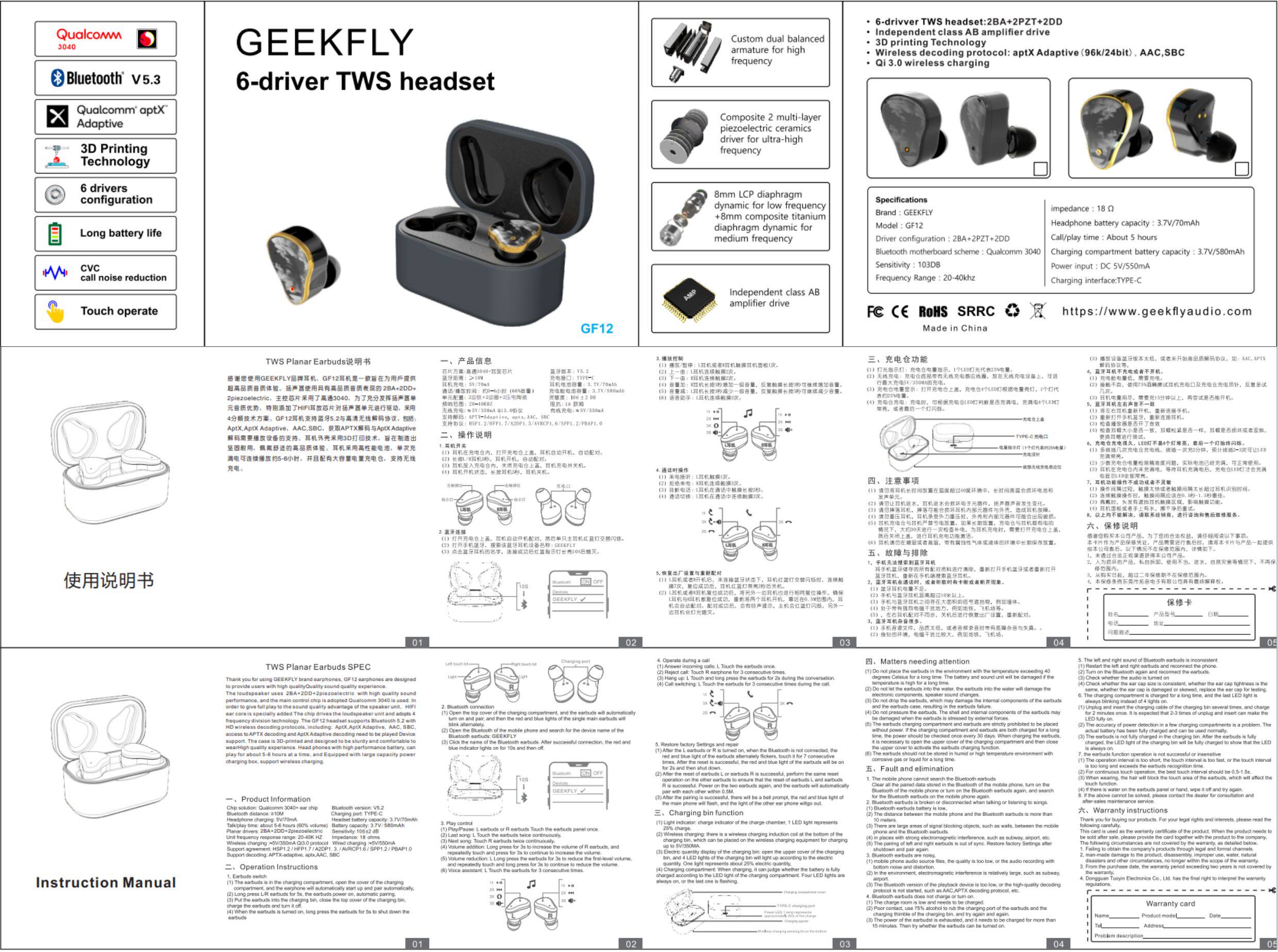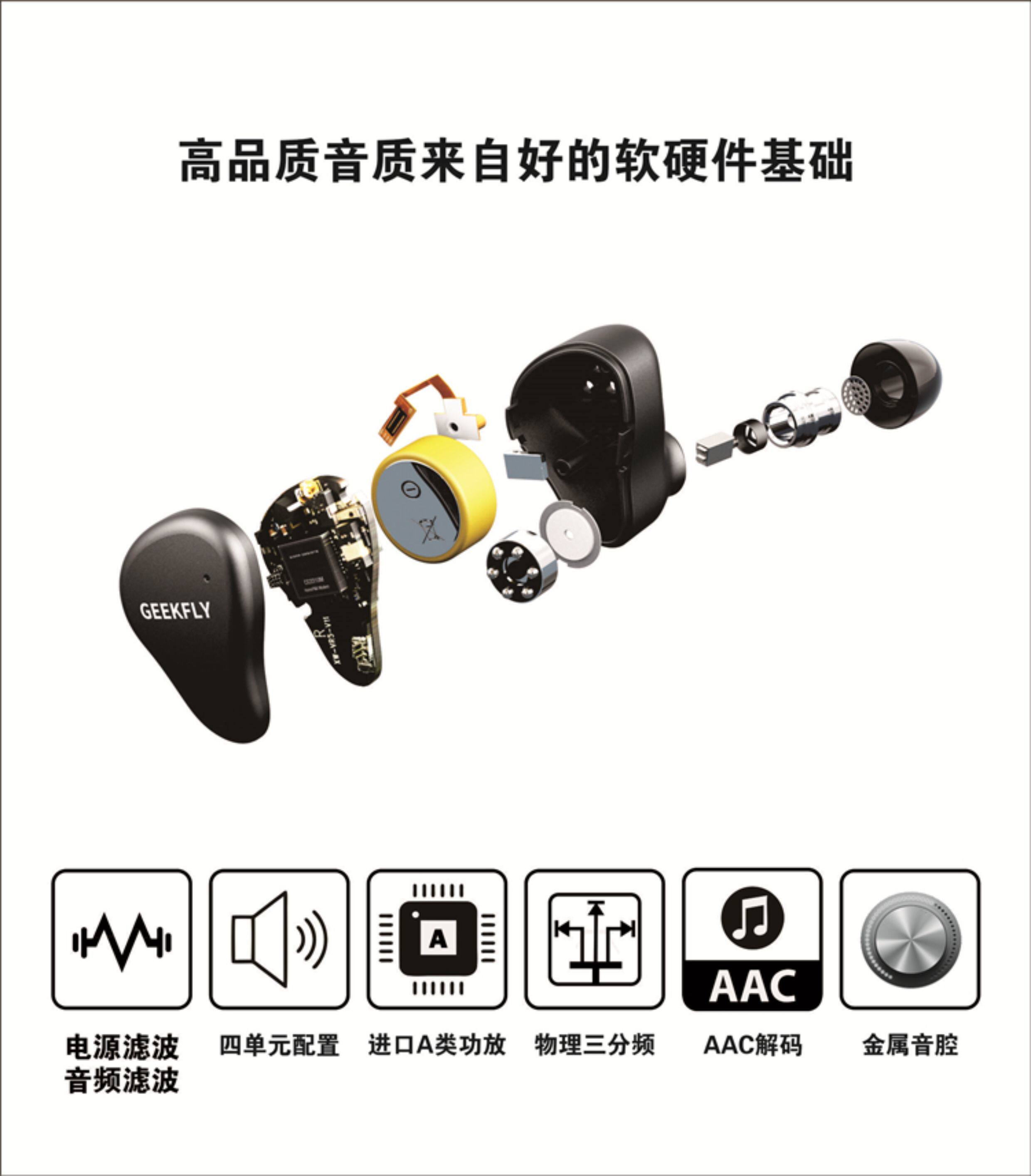 GEEKFLY GF12 настоящая беспроводная Bluetooth-гарнитура, водонепроницаемые наушники-вкладыши с двойной костной проводимостью IPX6, железные наушники-вкладыши двойного действия