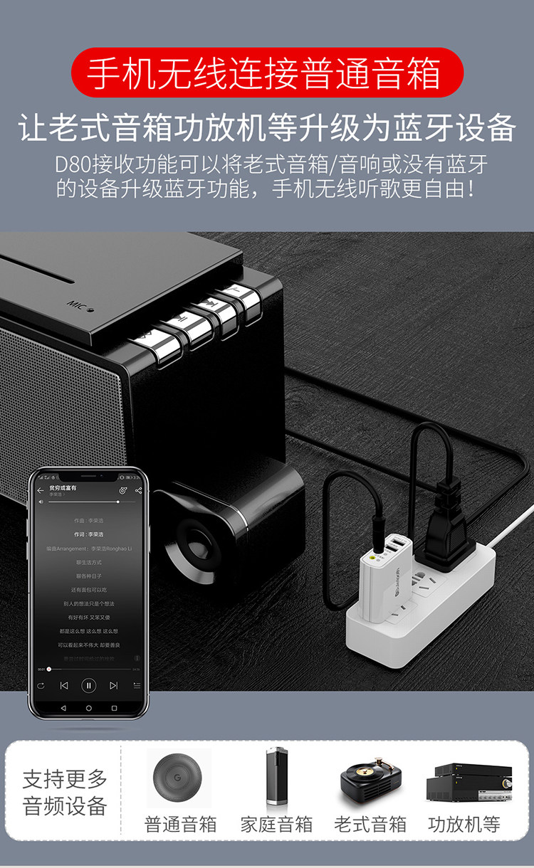 - D80 Bluetooth Audoseiver-Black +Lotus +3.5
