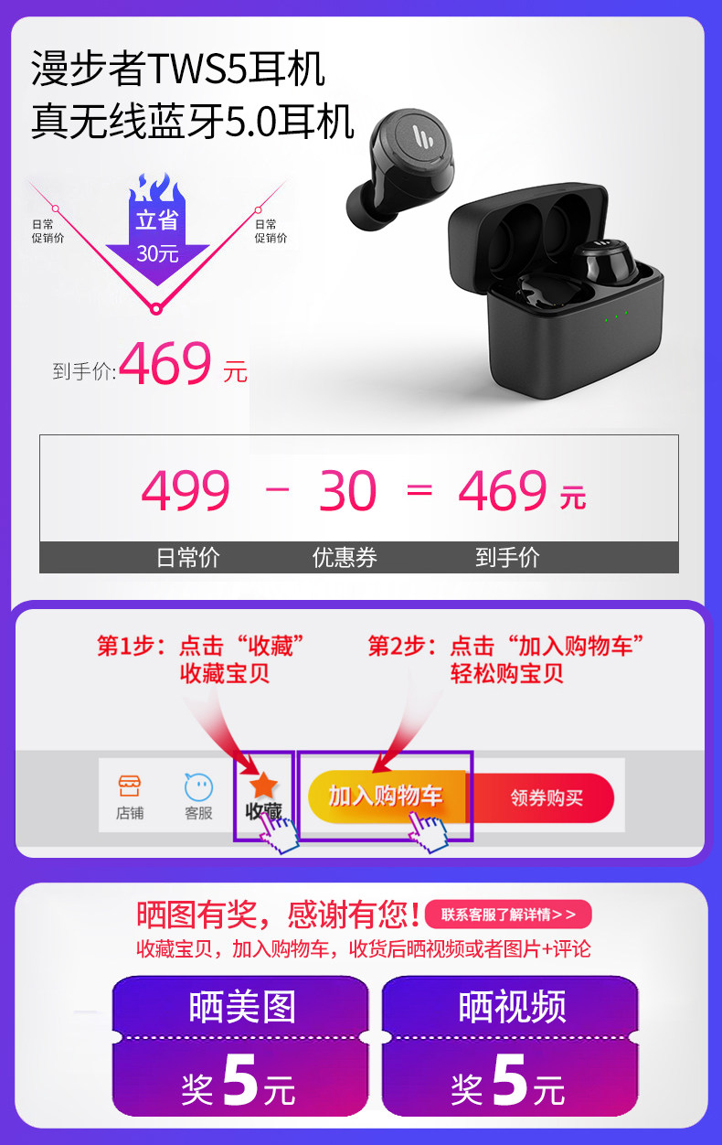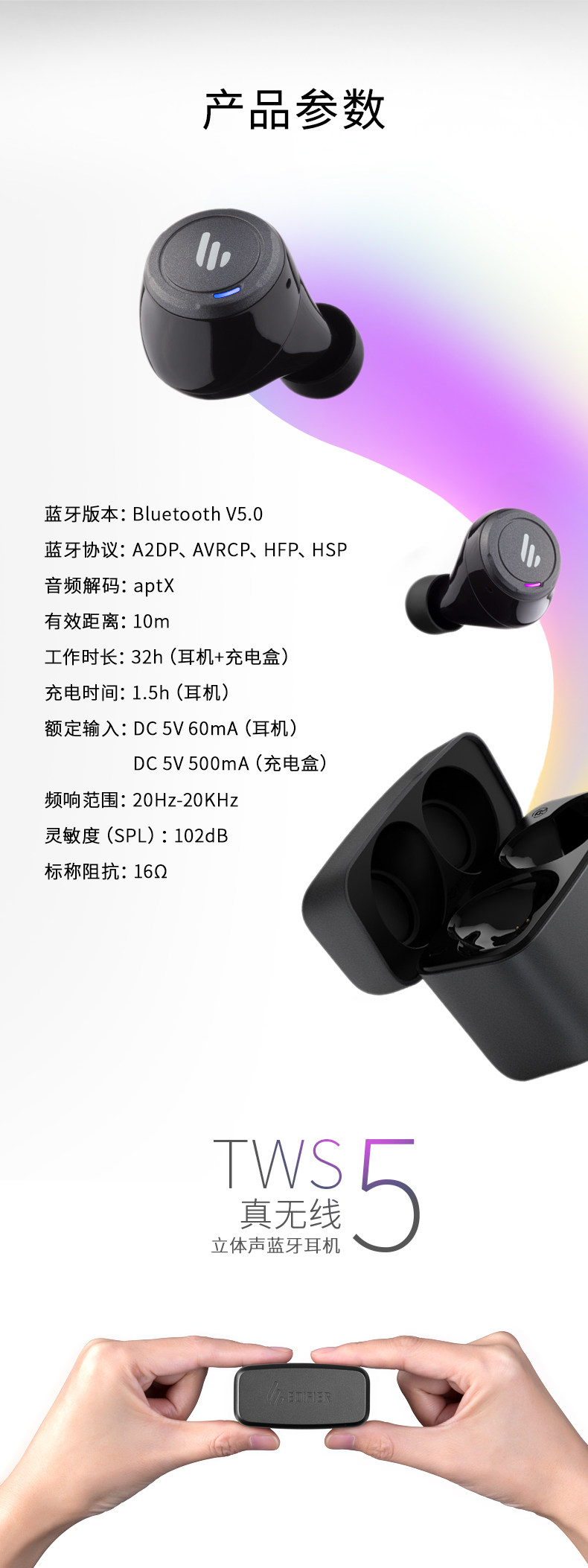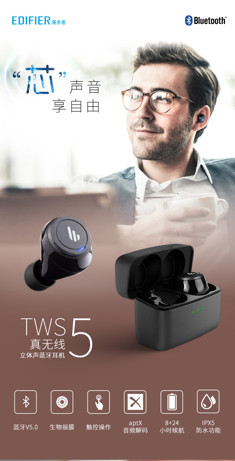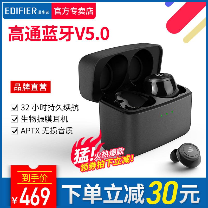 Edifier/Walkman Tws5 Bluetooth -гарнитура Двойная беспроводная беспроводная беспроводная передача, столкнувшись с наушниками, супер длинные резервные басы Android Apple Mobile Phone Universal Mini -Invisible 5.0