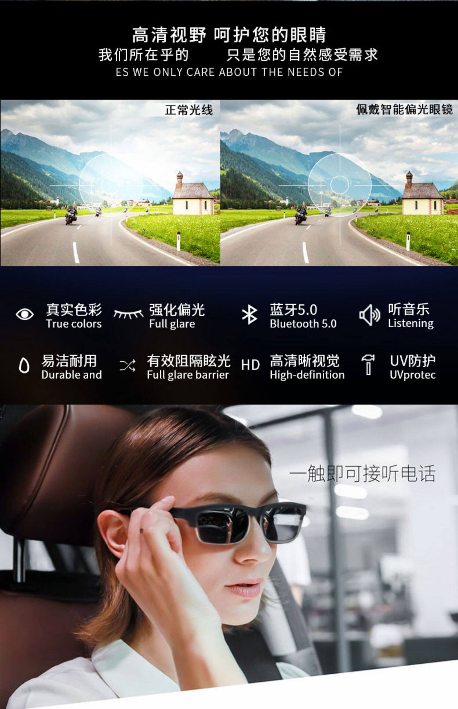 Беспроводные наушники, солнцезащитные очки на солнечной энергии, bluetooth, защита глаз