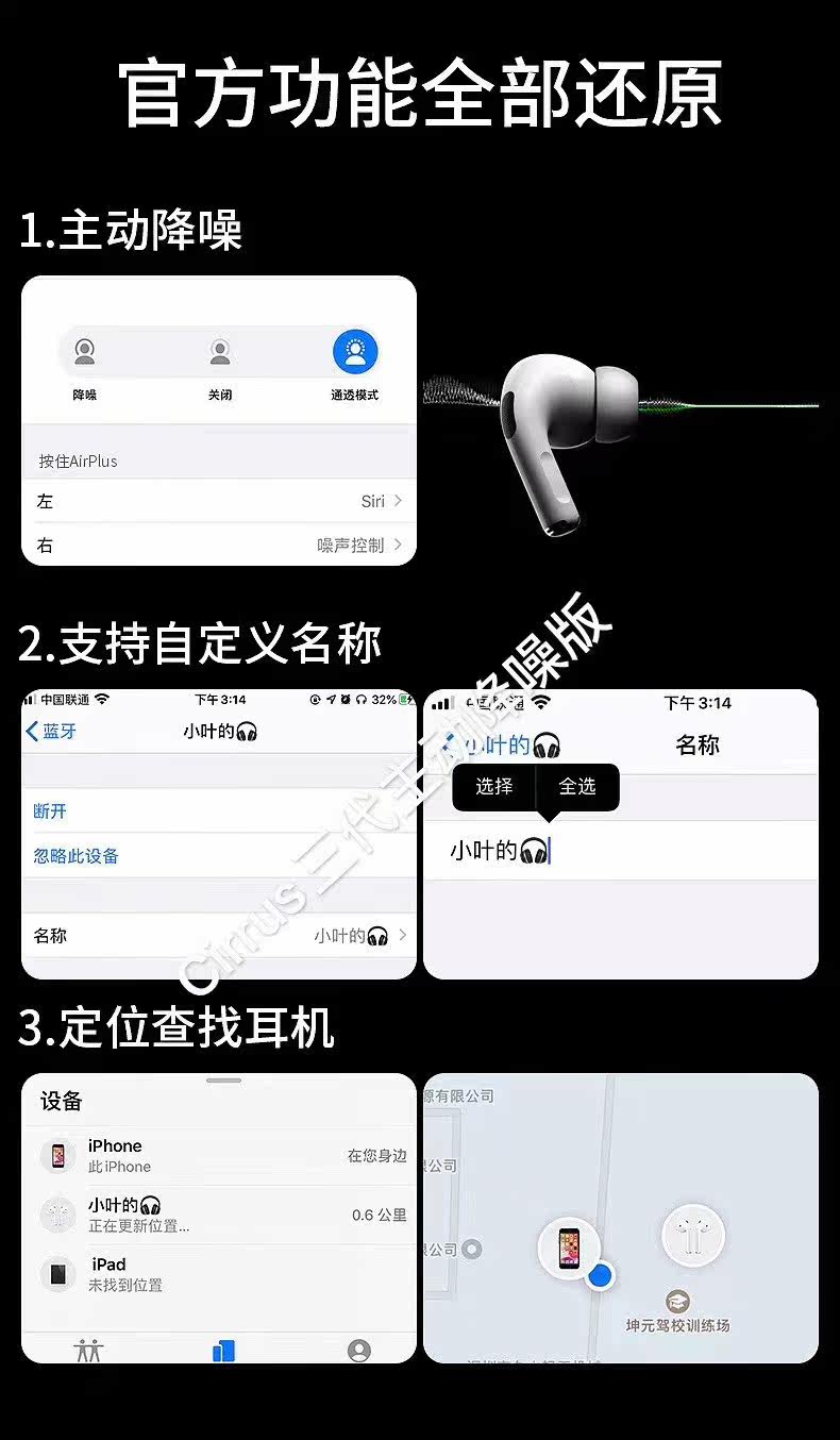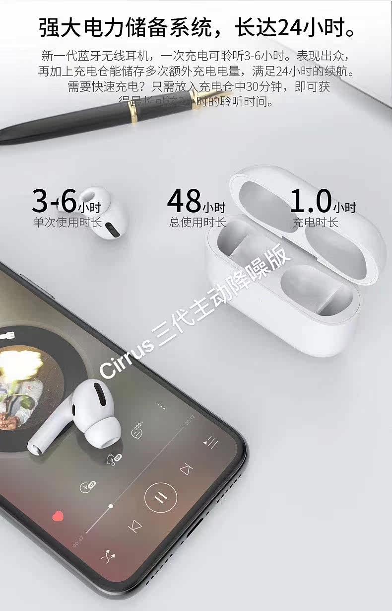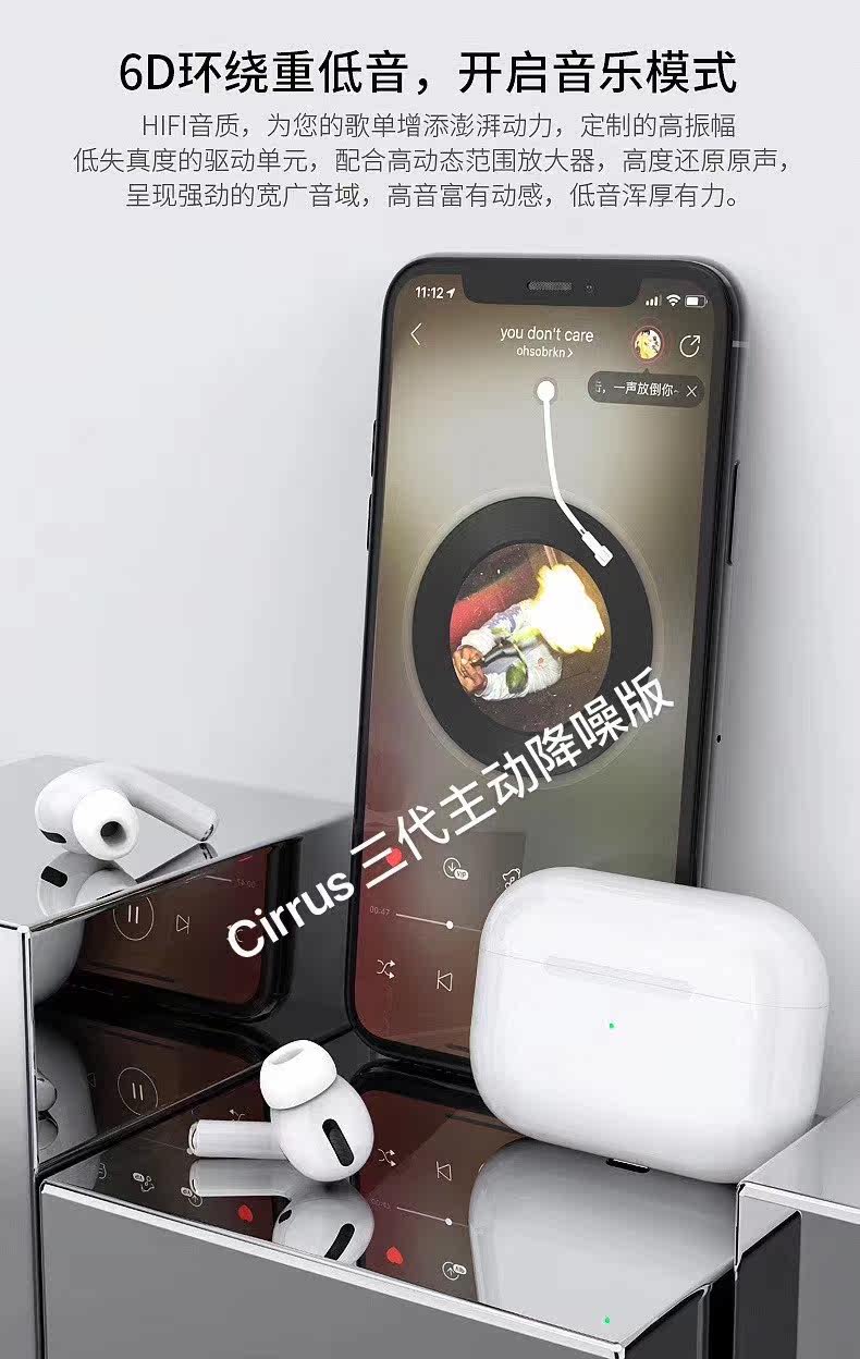 AXNANA Huaqiangbei Apple 3-го поколения Pro с режимом прозрачности, шумоподавлением, Bluetooth-гарнитура, подходит для Apple Android Sports