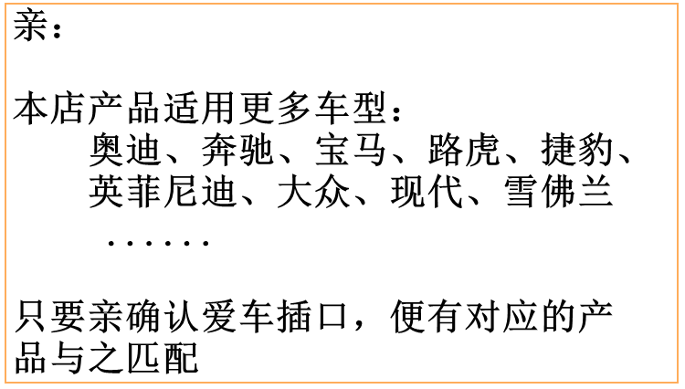 | Цвет: | Технологическая модель BMW Aux, Стандартная модель BMW AUX, Audi Benz Bentley Volkswagen Ami MDI Technology Model, Audi Benz Bentley Volkswagen Ami MDI Стандарт, Стандартная модель Audi Benz Bentley Volkswagen AUX, Land Rover Jaguar iPod Технология, Land Rover Jaguar Aux Standard, Другие модели Aux Universal Models |