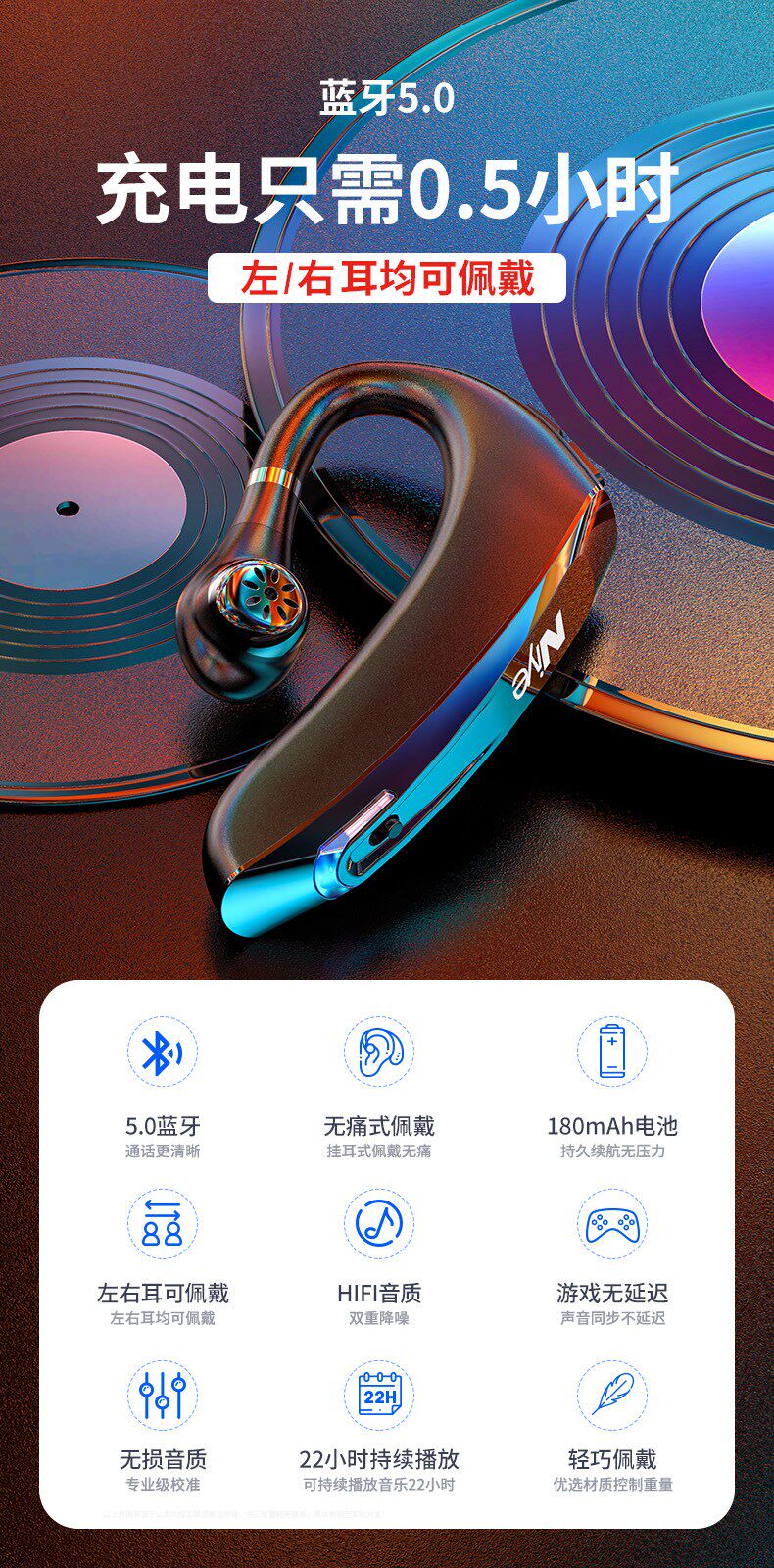 Huawei, honor, vivo, xiaomi, apple, беспроводные наушники, совместимые универсальные сверхдлинные клипсы, bluetooth, андроид
