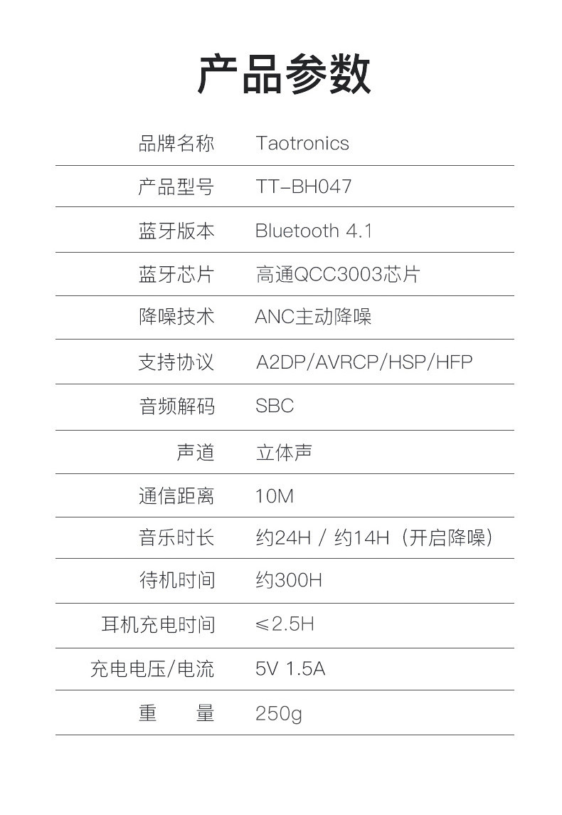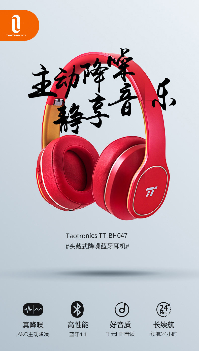 Taotronics носить активный шум, вызовать наушники Bluetooth Real Wireless Sound Vury Calling и более широкие