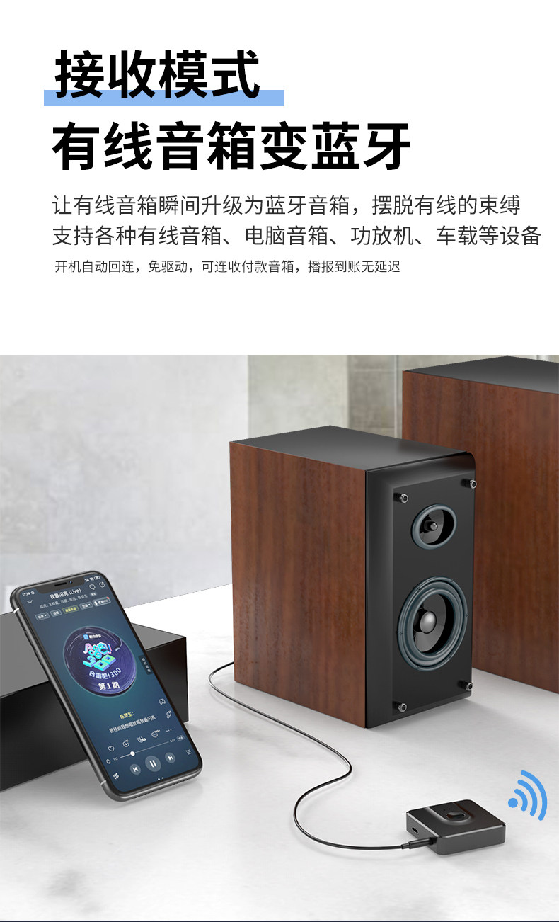 Huilingbird Bluetooth-приемник аудио-передатчик старомодный динамик с беспроводным аудиодаптером Bluetooth Home TV Adapter Adapter Car Aux Audio 3,5 мм интерфейс