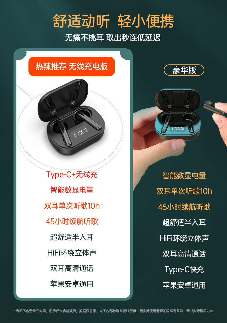 Bluetooth -гарнитура с двойной беспроводной полупроводной полузащитным ушным ухом и женщинами Universal Long Long Routby Navigation Song, прослушивание песня, высокое качество звука 2020 Новая модель 2020
