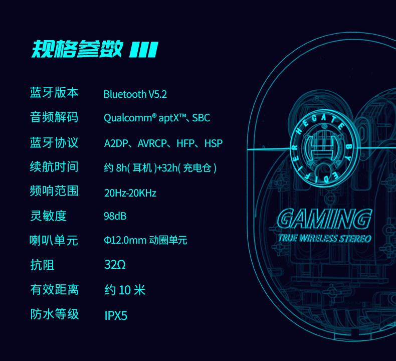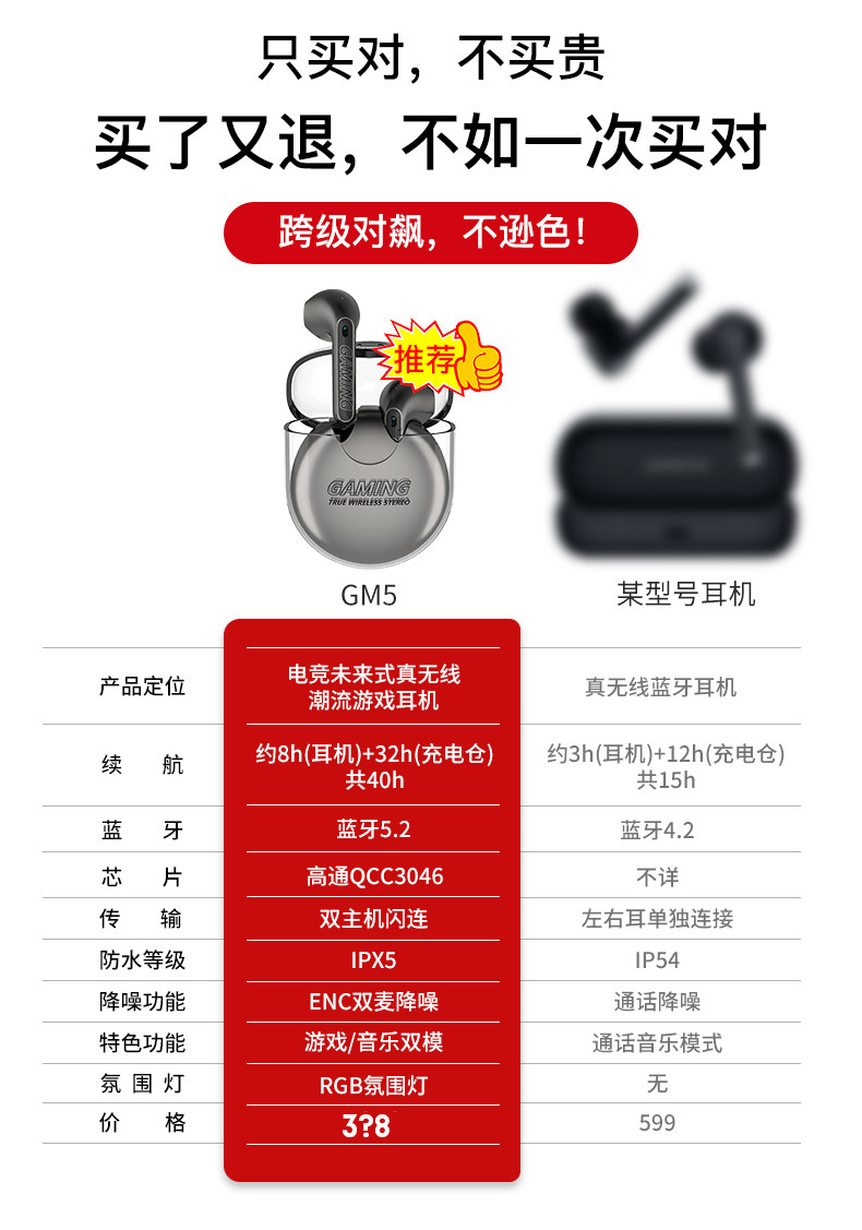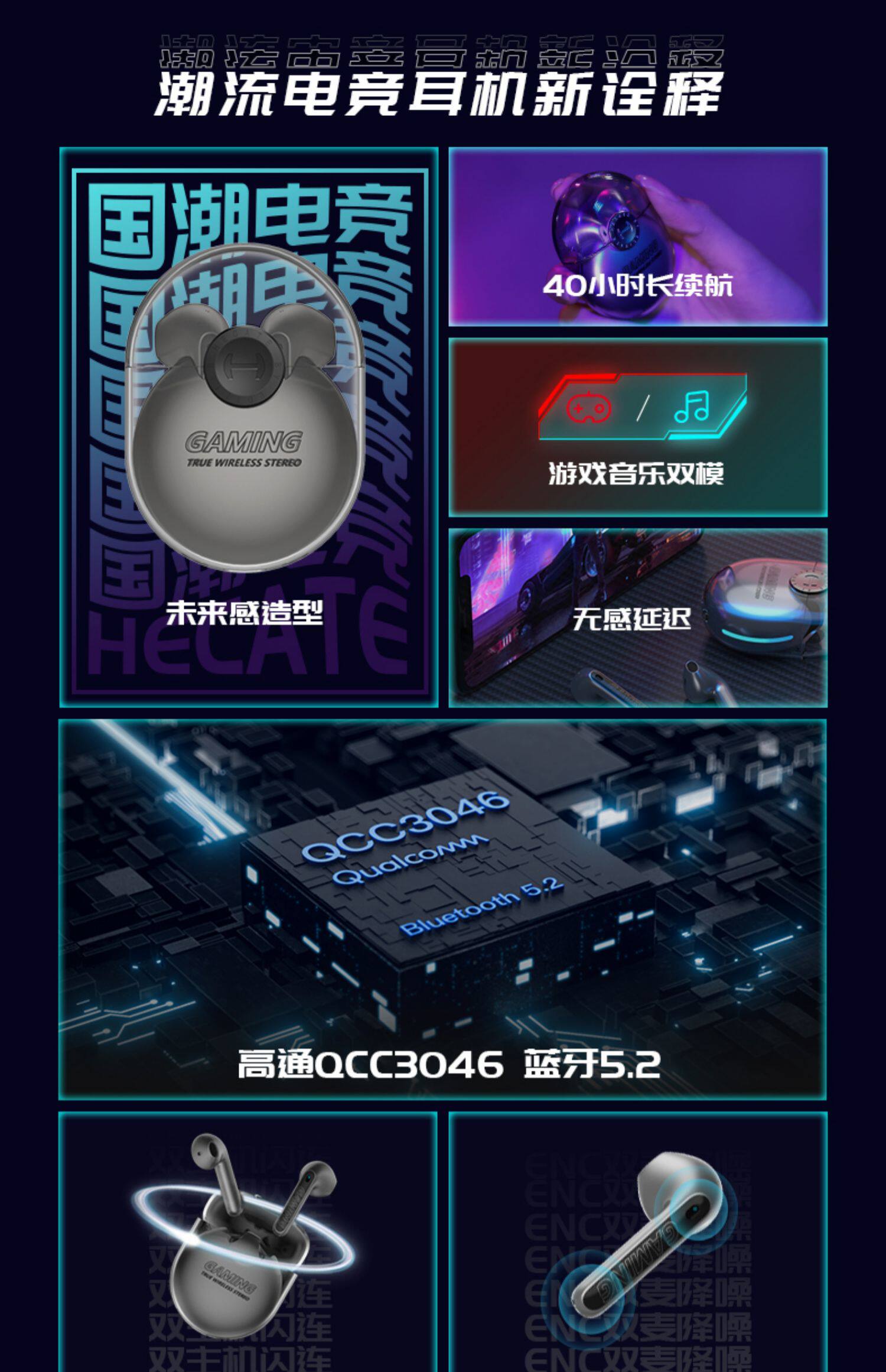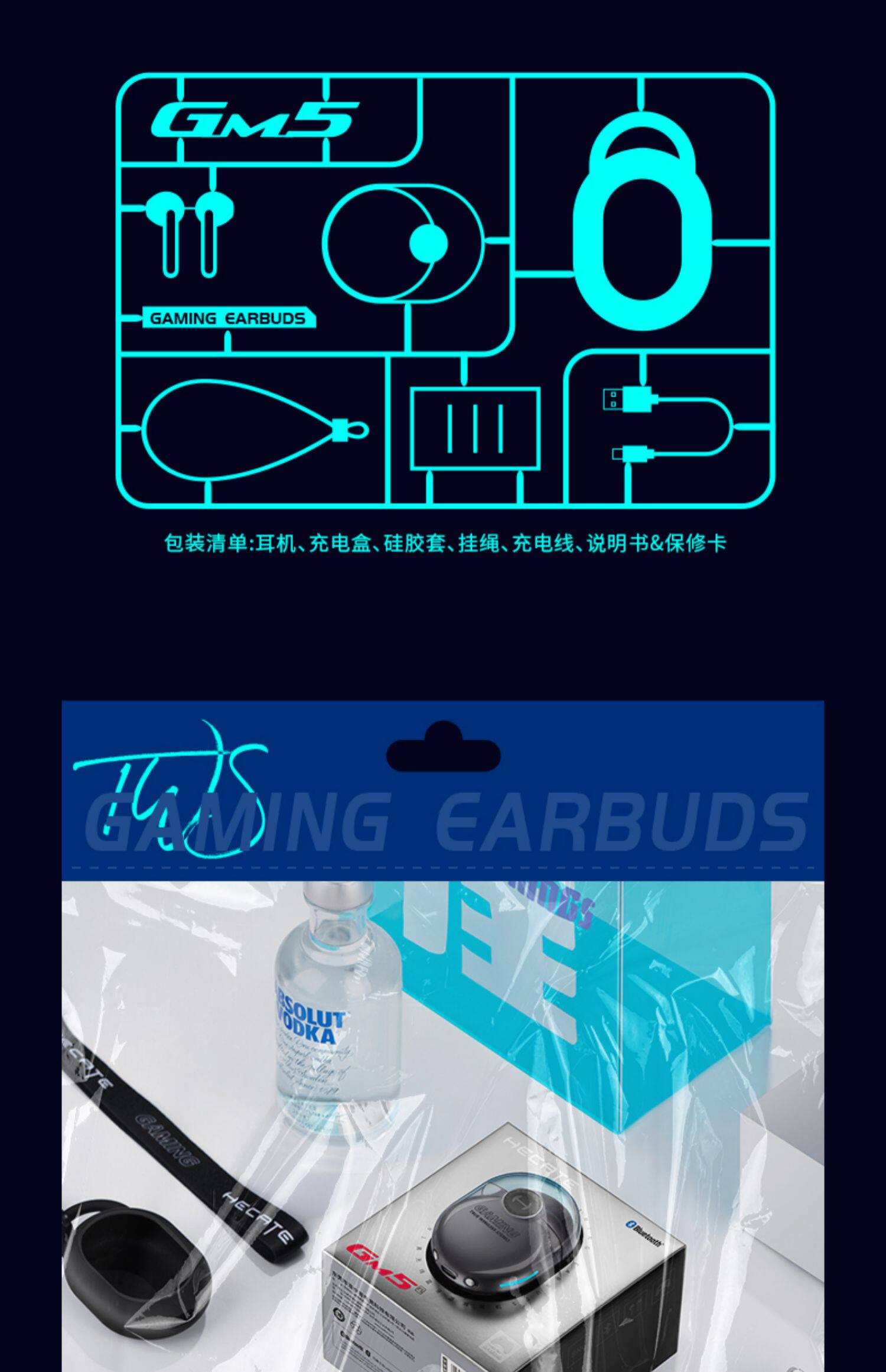 Wanderer GM5 True Wireless Bluetooth Gaming Hearset курица E-Sports Полу-вухи