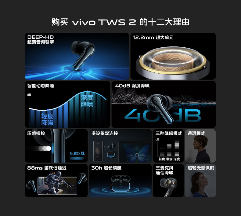 vivo TWS 2 настоящая беспроводная гарнитура Bluetooth Оригинальная подлинная шумовая снижение шума высокое качество видео Новое iqoo tws 2