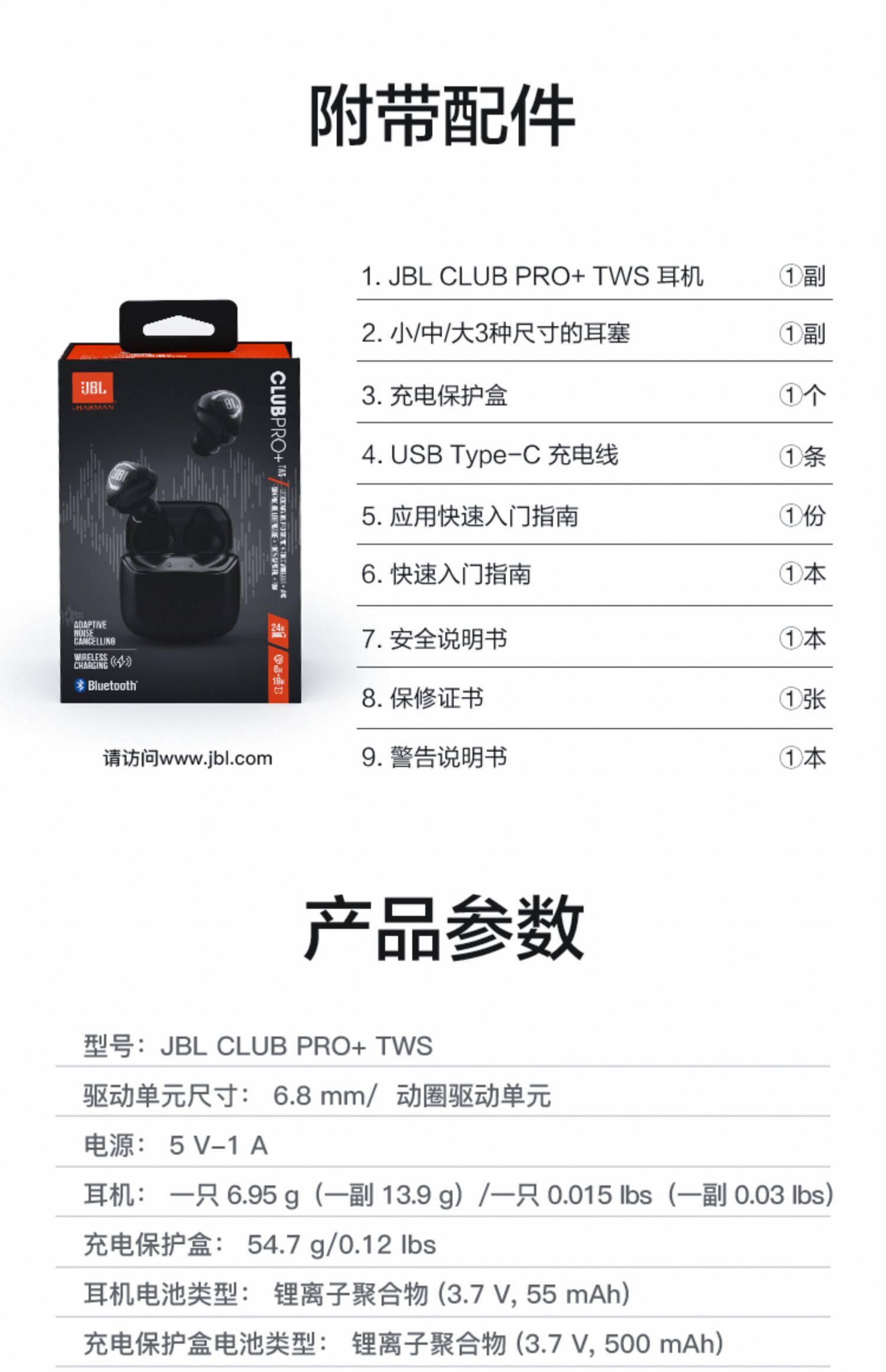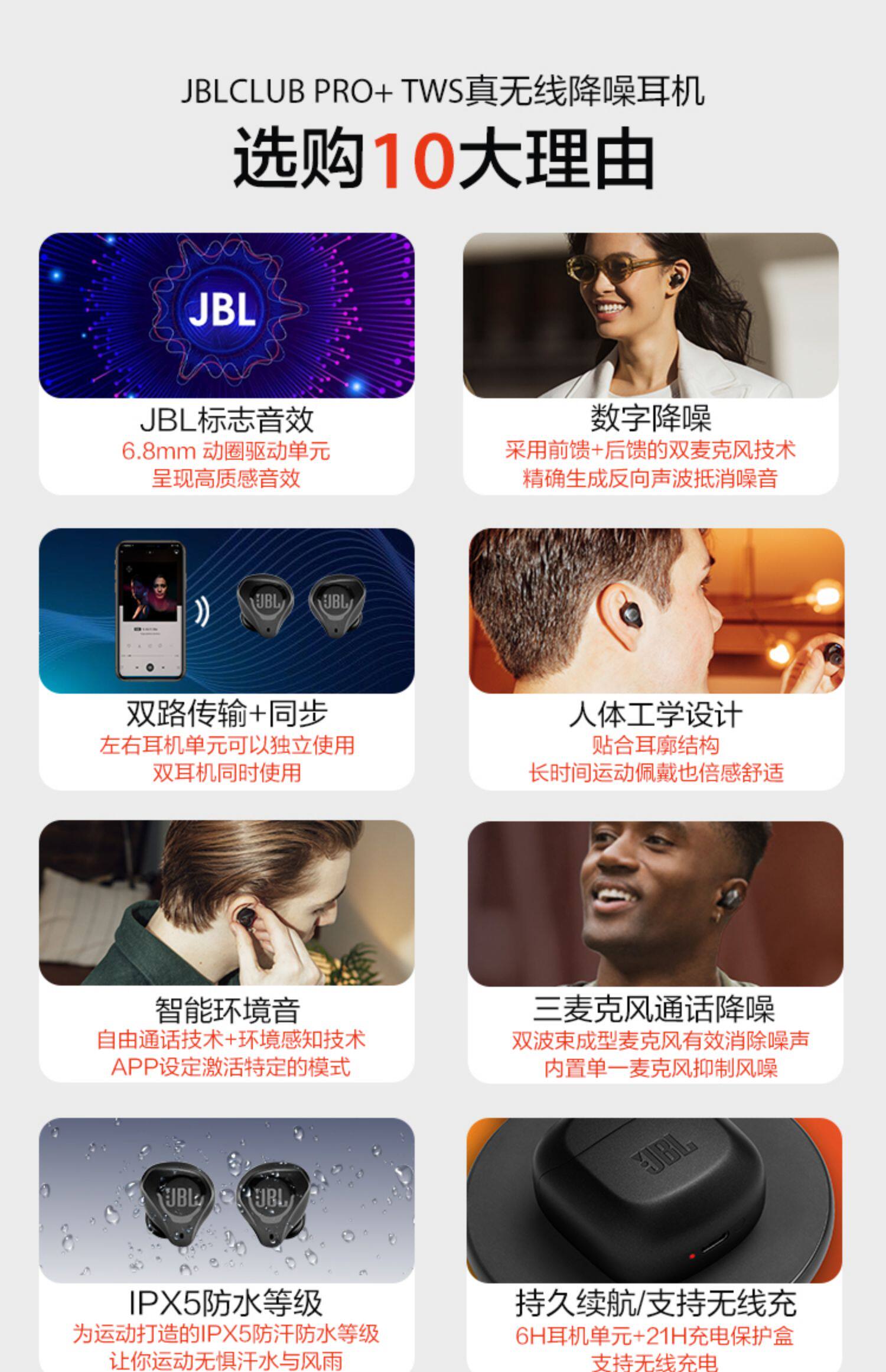 JBL Club Pro+TWS True Wireless Bluetooth -гарнитура Активный звонок по снижению шума с басом MSHIFI