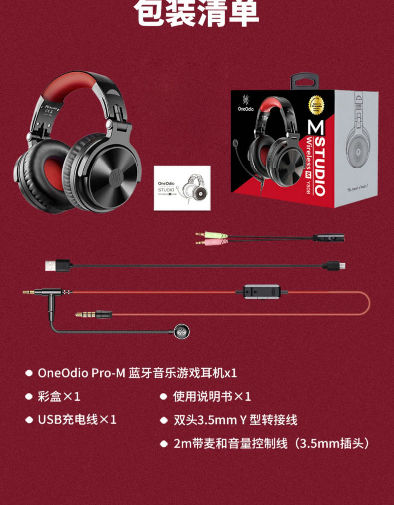 Беспроводная Bluetooth-гарнитура OneOdio с креплением на голову, проводная гарнитура двойного назначения для мониторинга музыки с тяжелыми басами, компьютерная гарнитура