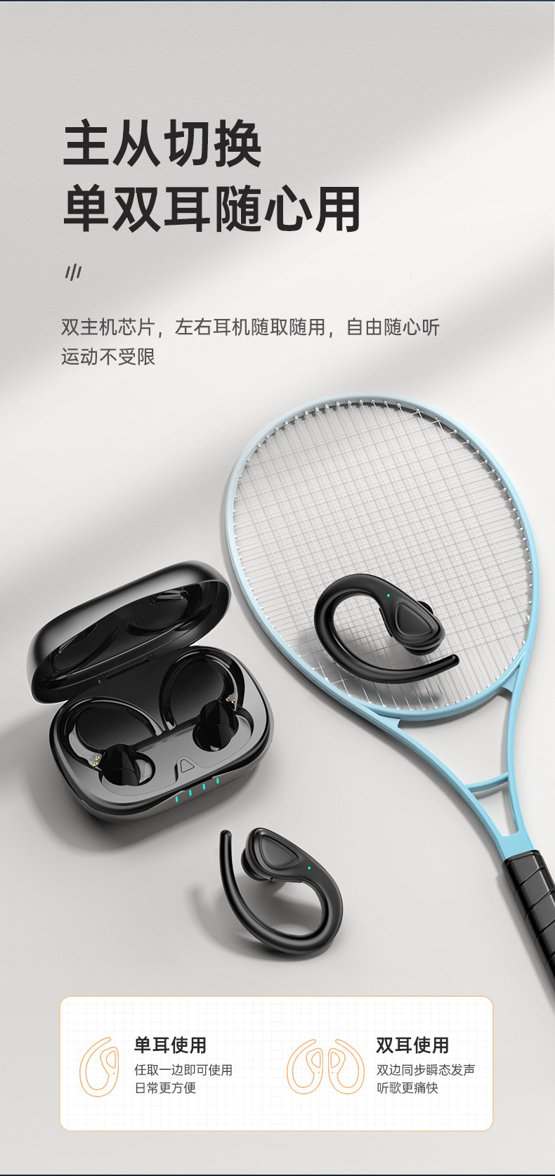 MYDUKE Bluetooth-гарнитура, спортивная беспроводная ушная гарнитура с шумоподавлением, работает в 2026 году, новый сверхдлительный срок службы батареи, высокое качество