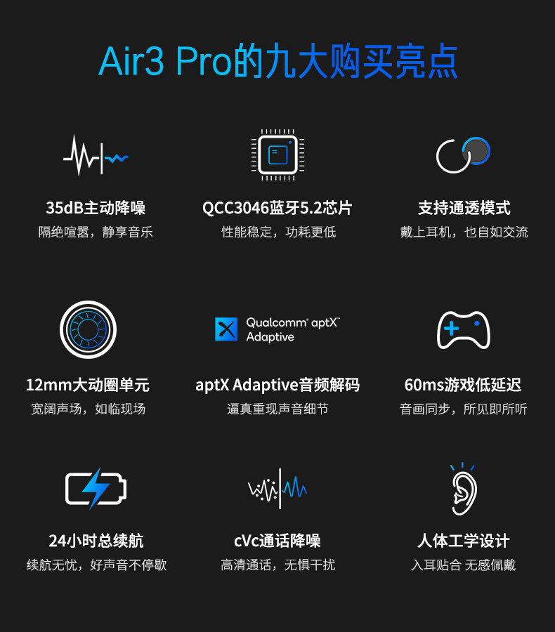 Звуковые титы/Pats of Platting Air3 Pro Bluetooth Наушники беспроводной спорт с двойным ухой.
