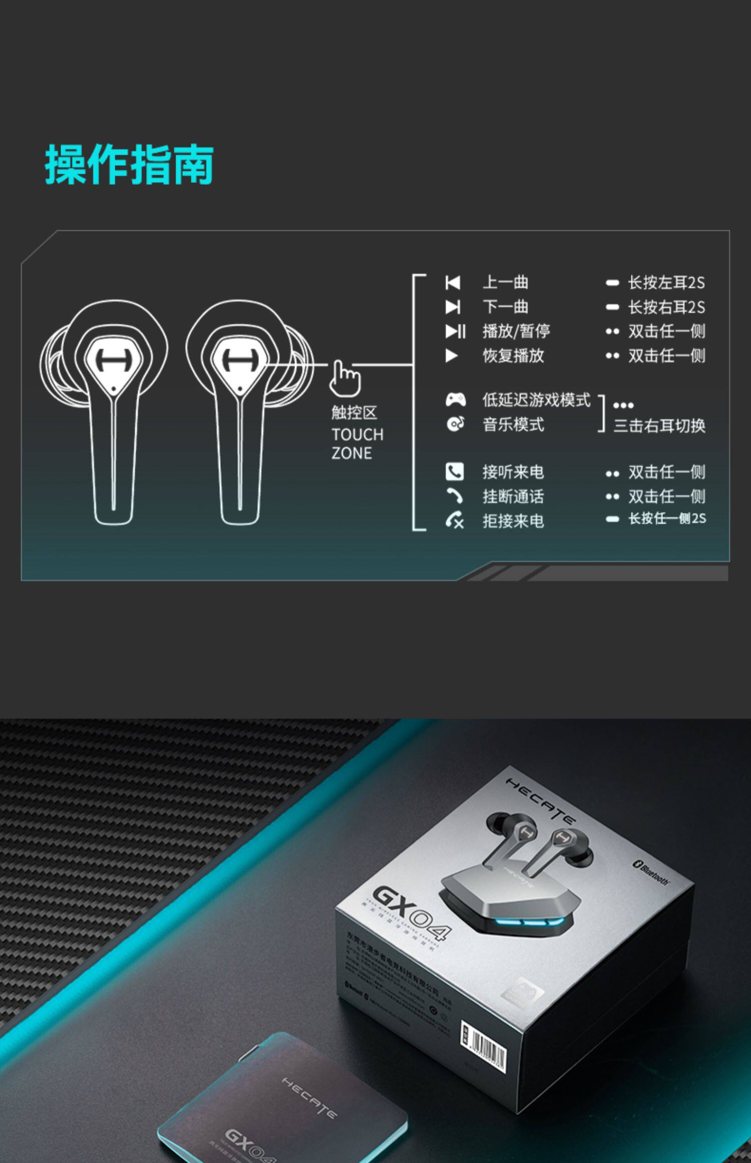Hecate Walker GX04 Zhen Wireless Game Game Bluetooth Гарнитура Раннее срок службы батарея ест курицу снижение шума