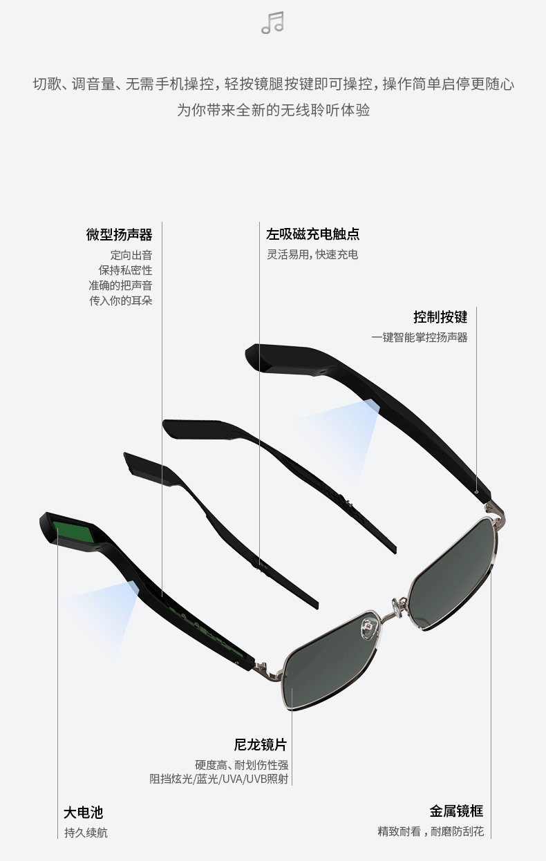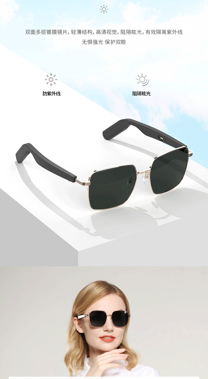 Элитные умные беспроводные наушники на солнечной энергии, солнцезащитные очки, bluetooth